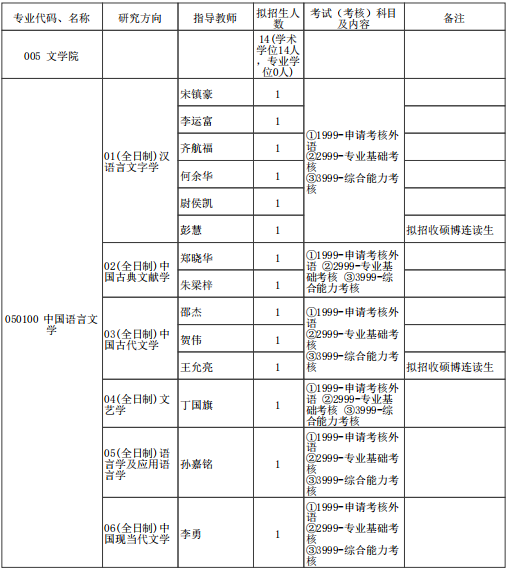 (1)笔试考核(100分):笔试考核主要考察对报考专业和其他相关专业知识的了解、掌握、运用能力。时间为3小时,由文学院研究生教学办公室组织考试。