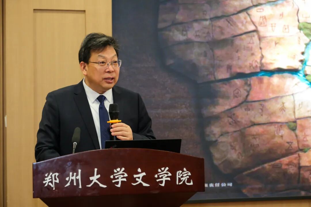 张斌在致辞中回顾了纪录片《一片甲骨》的创作与传播成效。他表示,该片是河南广电传承传统文化的重要实践,通过全媒体传播策略,推动甲骨文从“冷门绝学”走向“时尚国潮”,目前全网播阅量已超21亿。他对郑州大学汉字文明研究中心提供的学术支持表示感谢,认为该合作增强了影片的思想性与艺术性,并期待未来继续深化双方在文化创作与传播领域的协同合作。
