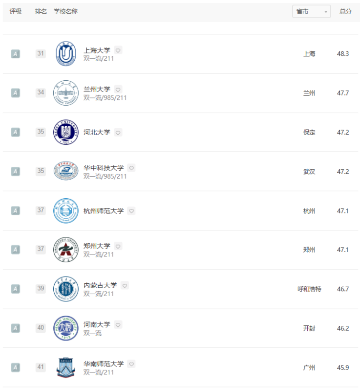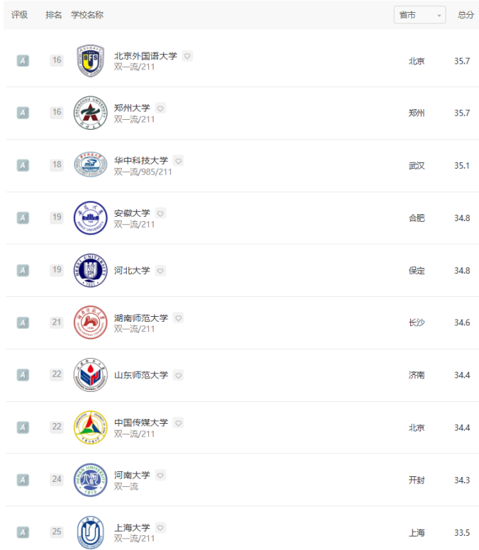 软科“中国大学专业排名”采用学校——学科——专业三层次专业竞争力评价框架,被称为迄今为止规模最大的中国大学本科专业排名。此次汉语言文学专业共有328所高校上榜,汉语国际教育专业共有189所高校上榜。