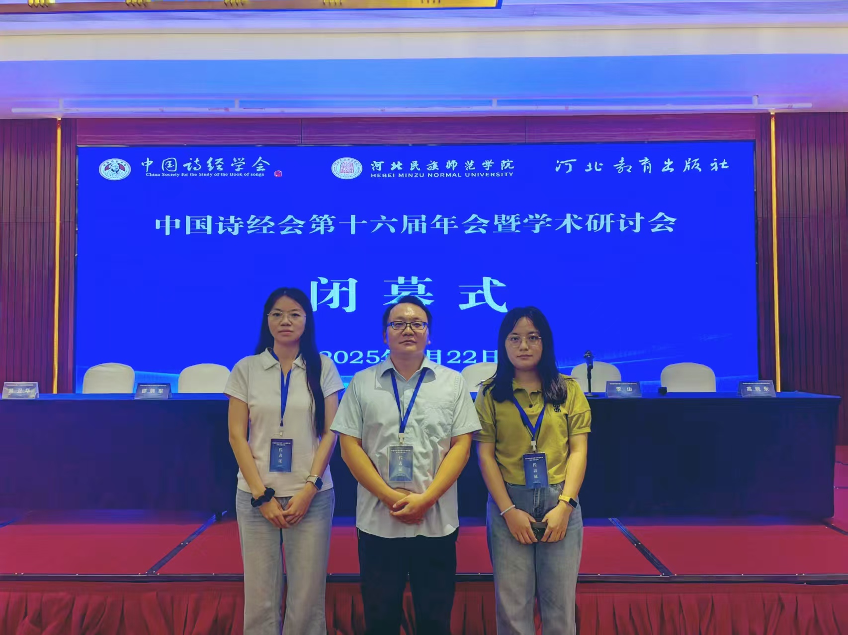 2025年8月20日-23日,由中国诗经学会主办、河北民族师范学院承办、河北教育出版社协办的“中国诗经学会第十六届年会暨国际学术研讨会”在河北承德召开。来自北京师范大学、山东大学、陕西师范大学、南京师范大学、郑州大学等国内外多所高校及研究机构的百余位学者出席会议,我院古代文学教研室邵杰教授,以及硕士研究生万荣荣、谭婷应邀参加了本次会议。