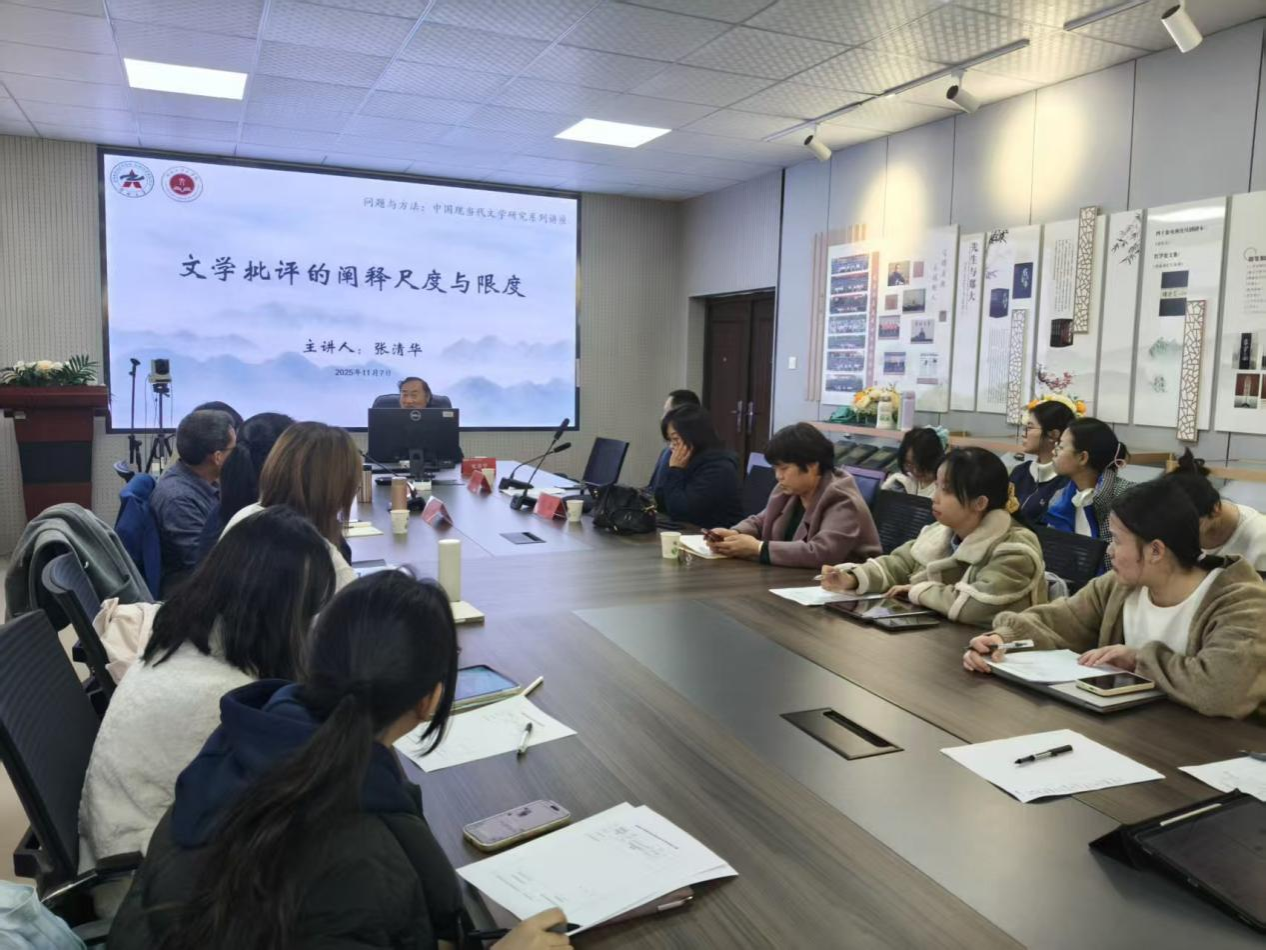 2025年11月7日下午,北京师范大学文学院教授、博士生导师、教育部“长江学者”特聘教授、中国当代文学研究会会长张清华莅临文学院,在二月河文学艺术研究中心为文学院师生开展了题为“文学批评的阐释尺度与限度”的学术讲座。本次讲座由郑州大学文学院党委副书记、副院长、中国现当代文学专业学科带头人李勇教授主持,文学院师生代表参加。