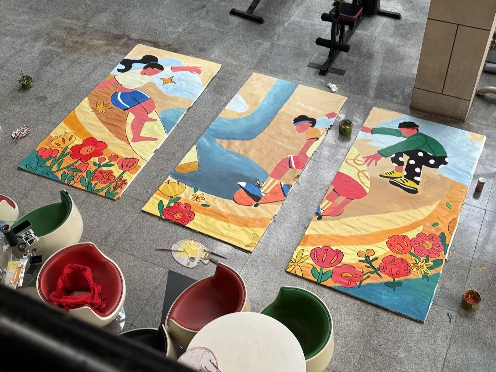 赛场外,文学院学子大声呼喊,为运动健儿们加油助威,一篇篇加油稿不断传递,字里行间都涌动着文学院团结奋进的力量,尽显学院的卓越风采。精心制作的大型展板绚丽夺目,人物动作舒展奔放,尽显青春动感,展现出文学院如潮水般的澎湃热情。