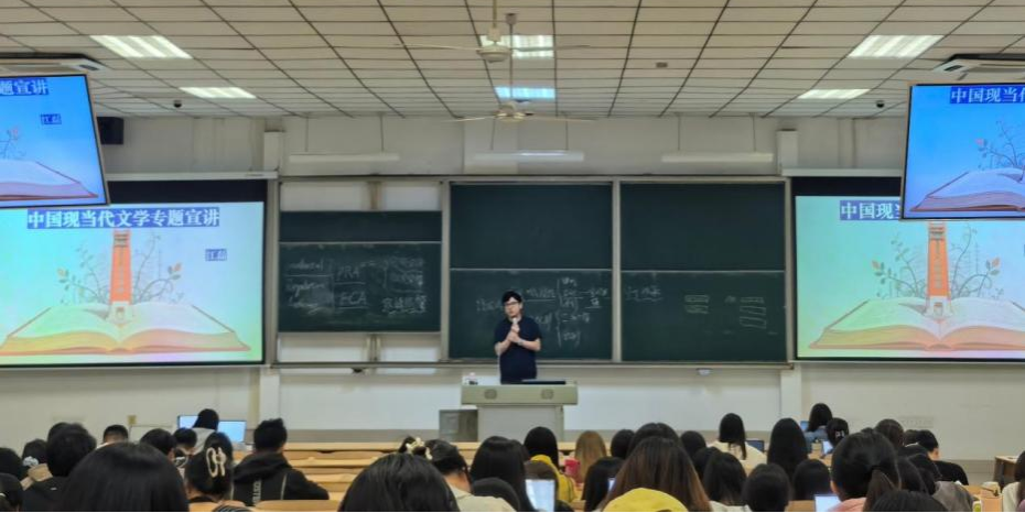 4月20日至26日是首个全国“全民阅读活动周”,为有效引导学生科学规划学业发展路径,文学院本周举办“文院传薪,师说研途”考研备考与学业规划宣讲活动。本次活动邀请江磊、刘玉叶、孙嘉铭、张昊臣四位老师与同学们面对面交流,围绕考研备考策略、专业方向选择、学术阅读积淀等核心议题,结合世界读书日“爱读书、读好书、善读书”的倡导展开深度分享与研讨。