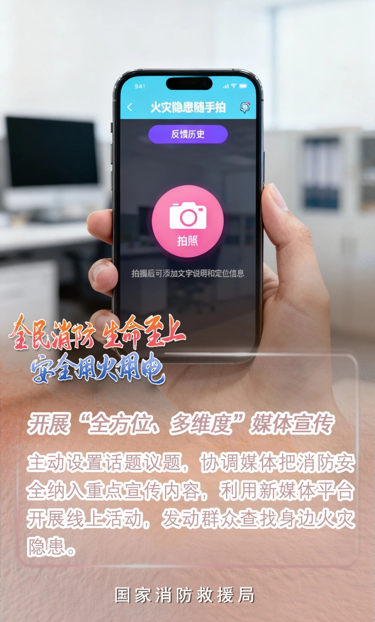 今年11月9日是第34个全国消防日国务院安委会办公室、国家消防救援局定于11月份在全国开展消防宣传月活动主题是“全民消防、生命至上——安全用火用电”