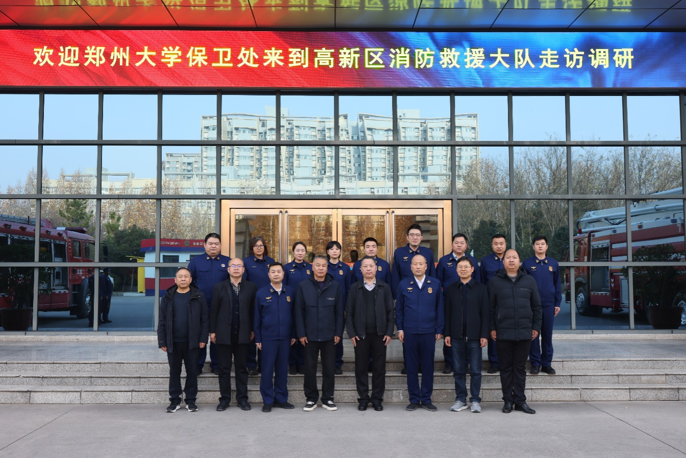 为学习先进消防工作经验,加强校园安全建设,12月10日下午,郑州大学保卫处党总支书记郭文理带领保卫处新一届领导班子成员,赴郑州高新区消防救援大队开展走访调研学习活动。本次调研以“学先进经验·促校消协作·筑安全校园”为主题,旨在推动校消深度协作,提升校园消防安全管理水平。下午3时,郑州大学保卫处一行抵达消防救援大队,受到大队长游阳、副大队长宋东等指战员的热情接待。活动伊始,双方在一楼大厅前合影留念,记录...