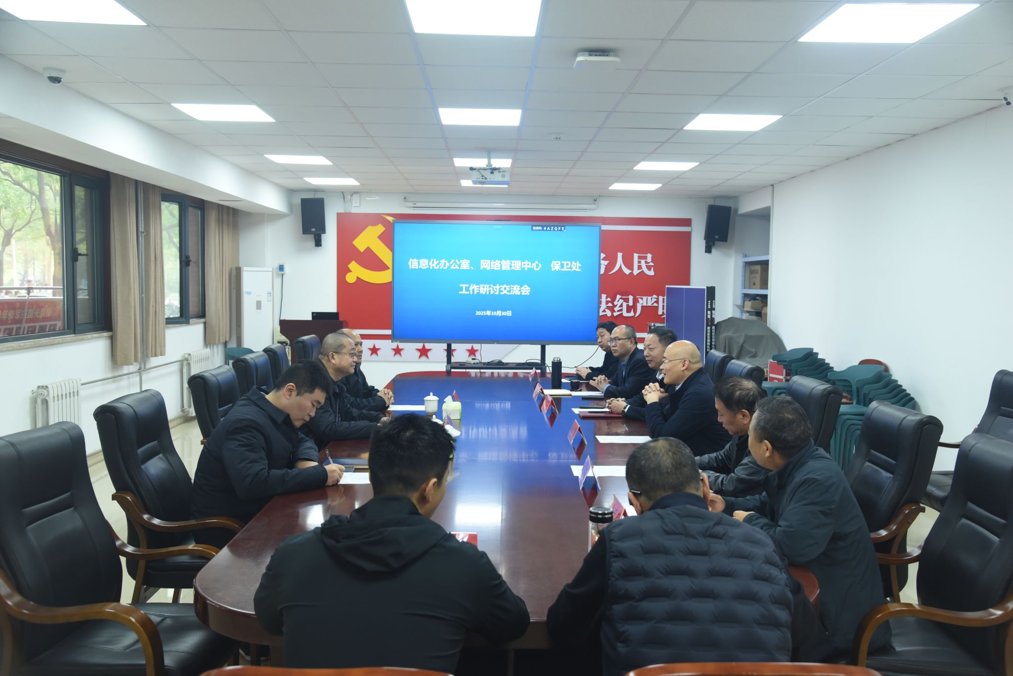 10月30日上午,保卫处与信息化办公室、网络管理中心召开工作研讨交流会。信息化办公室、网络管理中心主任张子蛟、信息化办公室、网络管理中心副主任张宏坡、信息化办公室、网络管理中心副主任兼规划与学科建设部副部长王国卿、保卫处党总支书记郭文理、保卫处处长张凯、副处长余海涛及消防管理、交通管理、技术防范管理、校园秩序管理、治安管理等科室负责同志参加会议。会议重点聚焦四大核心工作方向展开深入研讨,:一是安...