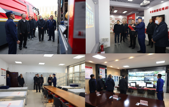 随后,在讲解员的引导下,调研组依次参观了消防救援车辆器材展示区、战斗班、指挥中心及消防科普教育基地。通过实地观摩和现场讲解,大家深入了解消防救援队伍在“全灾种、大应急”任务背景下的装备建设与实战能力,切身感受到消防救援队伍纪律严明、作风过硬的优良传统,并对高新区的接警调度机制有了更直观的认识。在科普教育基地,调研组结合校园消防安全实际,重点学习了火灾逃生自救知识及常见灭火设备的使用方法,进一步增强了消防安全意识和应急处理能力。