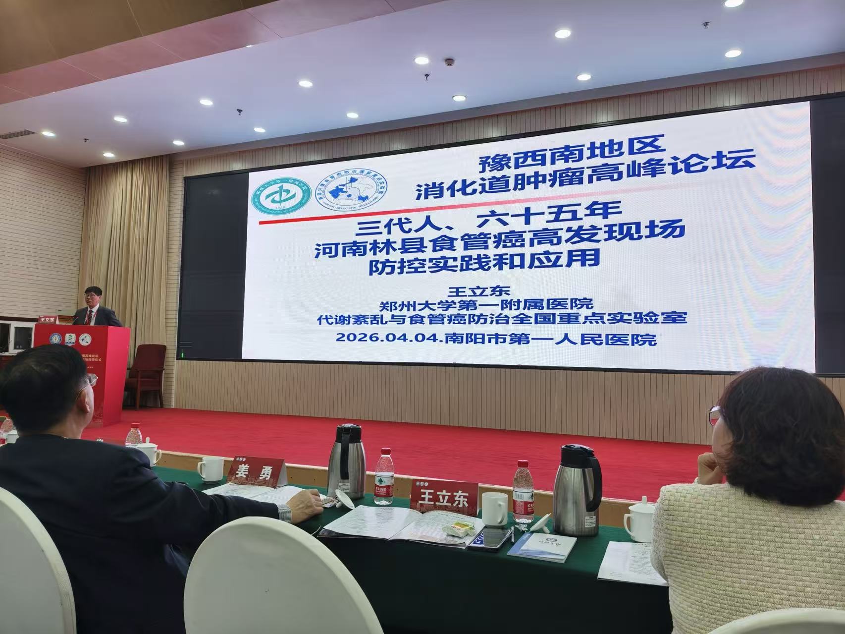 开幕式上,河南大学附属南阳市第一人民医院相关医院领导向与会专家和学者致以热烈欢迎,并介绍了医院近年来在消化道肿瘤诊疗体系建设、多学科协作以及人才梯队培育等方面取得的进展。我室王立东教授作为特邀专家,结合多年扎根河南林县食管癌高发区的科研实践,系统阐述了食管癌等消化道肿瘤的防控策略、早期筛查技术及规范化诊疗路径。报告内容翔实、案例生动,为豫西南地区基层医务人员提供了宝贵的实践参考。