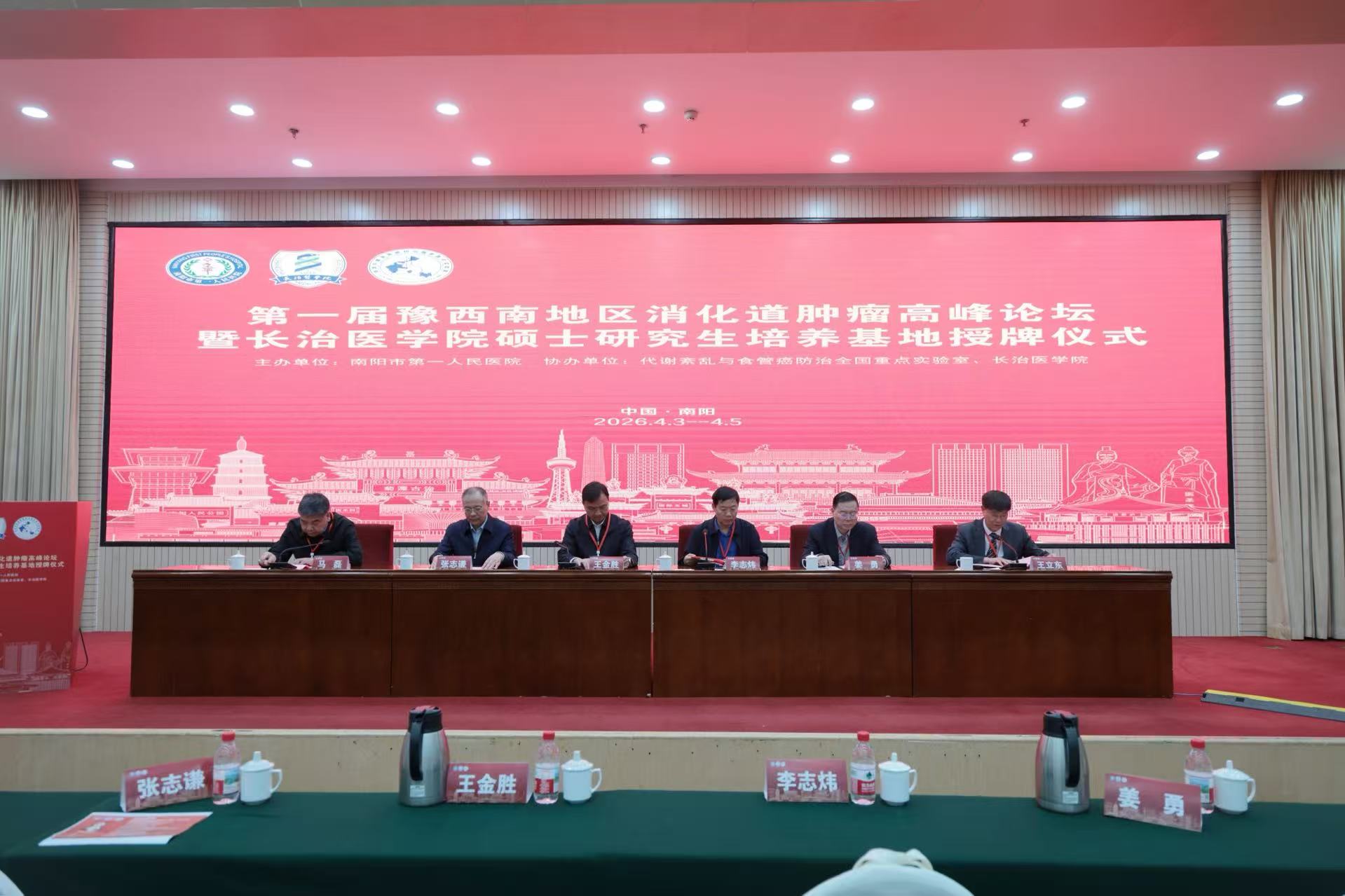 作者:实验室 发布时间:2026年04月08日 09:432026年4月3日-5日,第一届豫西南消化道肿瘤高峰论坛暨长治医学院硕士研究生培养基地授牌仪式在河南省南阳市成功举办。本次活动由河南大学附属南阳市第一人民医院承办,旨在推动区域消化道肿瘤防治水平提升,加强医学人才队伍建设。我室王立东教授携团队受邀出席并作专题报告。