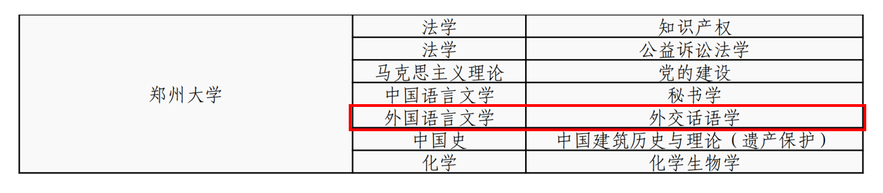 2025年10月11日,教育部发布《学位授予单位(不含军队单位)自主设置二级学科和交叉学科名单》。其中,郑州大学外国语与国际关系学院/中国外交话语研究院学科带头人、二级教授、博士生导师杨明星主持的“外交话语学”(Diplomatic Discoursology)获批为国家自主设置二级前沿交叉学科,正式列入教育部国家二级学科目录,可招收外交话语学学科的硕士、博士研究生。这是继2023年11月获批为河南省重点学科(新兴交叉学科)之后,“外交话语学”学科团队取得的又一项标志性成果。