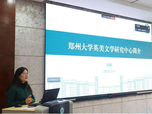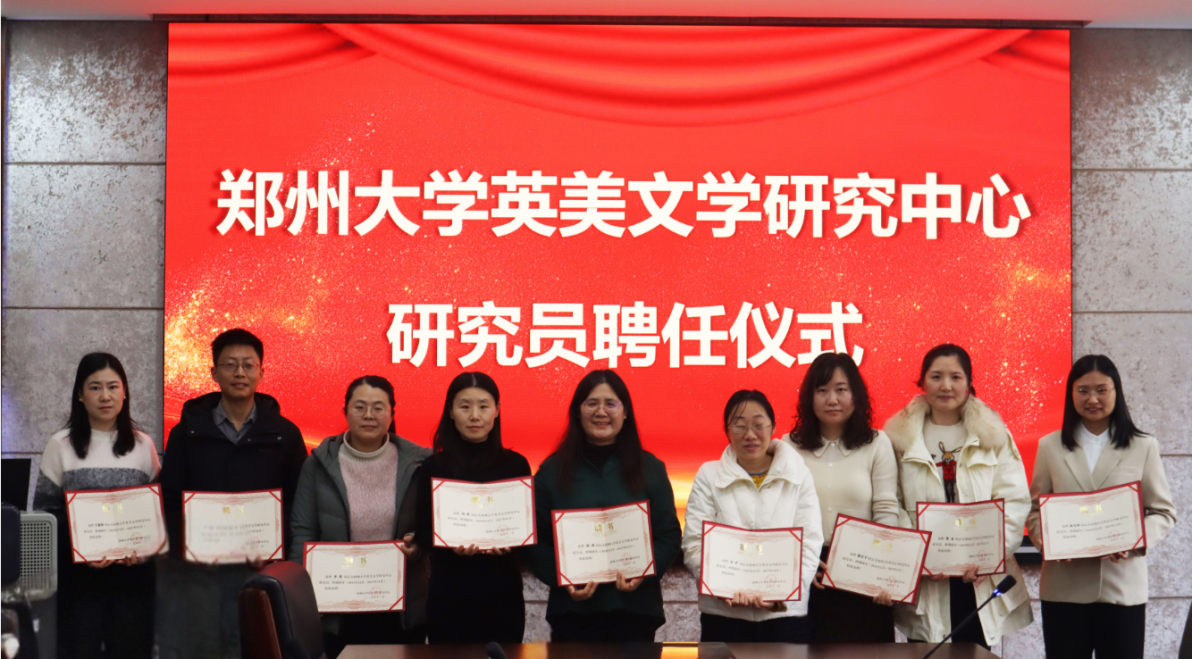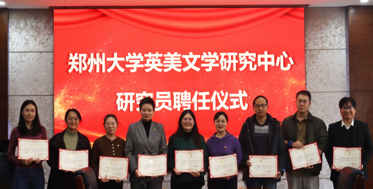 郑州大学英美文学研究中心主任张莉教授介绍了中心建设成果与未来发展规划。中心长期深耕外国文学研究领域,逐步形成多语种协同、多方向并进的研究格局。近年来,中心着力打造以“世界女性文学研究”为核心的学术特色,并重点建设“眉湖论坛”这一品牌学术活动。该论坛自创办以来,已发展成为国内具有一定影响力的学术平台,吸引了众多海内外学者参与,并获得了学界与媒体的持续关注。中心计划于2026年,联合世界女性文学研究专业委员会及北京外国语大学王佐良外国文学高等研究院,共同举办第四届眉湖论坛,以期进一步拓展中外文学交流与学术创新的空间。随后,张莉教授为新一届研究员颁发聘书,并合影留念。