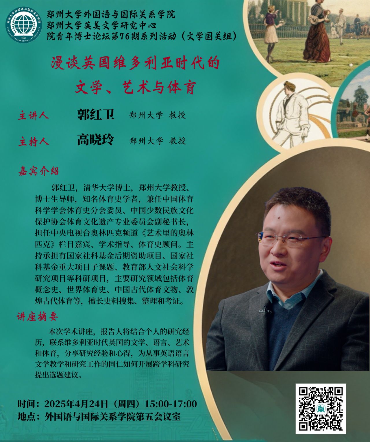为推动郑州大学外国语与国际关系学院和郑州大学英美文学研究中心的建设与发展,引领青年博士提升学术能力,我中心特此与院青年博士论坛(文学国关组)邀请郑州大学教授、博士生导师郭红卫来我院举办学术讲座。欢迎师生们积极参与!
