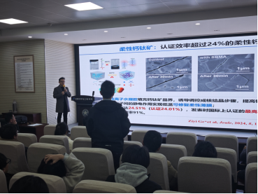 11月19日下午14:30,由我校研究生院、党委研究生工作部主办,材料科学与工程学院承办的研究生“名师名家”讲坛在主校区材料科学与工程学院教学楼207报告厅圆满举办。中国科学院宁波材料所二级研究员、国家级青年人才葛子义教授受邀主讲,以“高效率柔性钙钛矿太阳能电池产业化研究”为主题,带来一场聚焦光伏前沿技术与产业落地的深度分享。报告由学院院长王海龙教授主持,学院及兄弟院系师生代表现场参会,共探柔性光伏发展新路径。