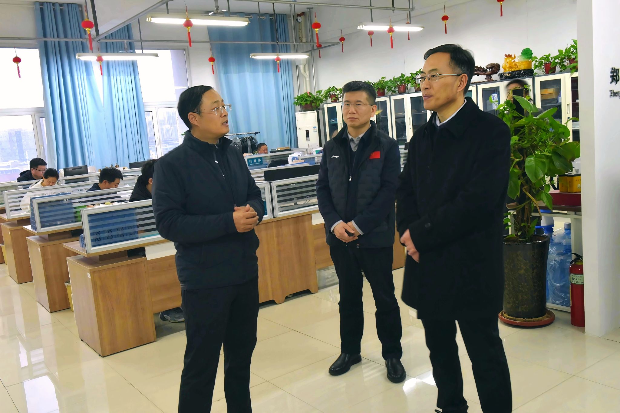 随后,李成伟书记一行深入研究院重点孵化的科技企业开展实地走访,先后考察了由郑州大学牛明军教授创办的郑州国研环保科技有限公司、蒋慧琴教授领衔的郑州知立康科技有限公司,以及河南中标检测服务有限公司。调研过程中,李成伟与企业代表亲切交流,详细了解技术研发、成果落地及市场前景等情况。