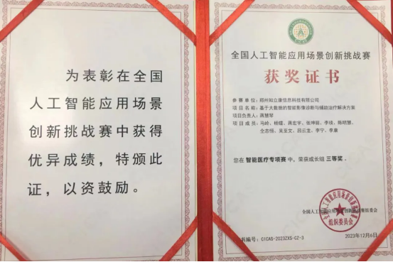 重点孵化企业知立康荣获全国人工智能应用场景创新挑战赛智能医疗专项赛成长组三等奖