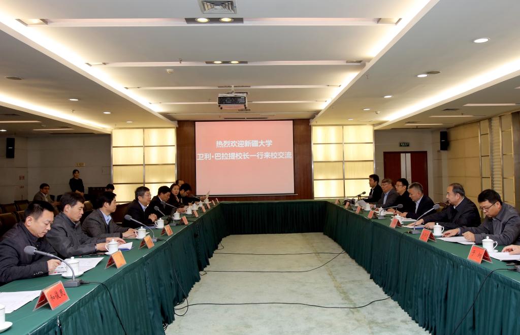 卫利·巴拉提校长对我校建设发展取得的成绩表示祝贺,并介绍了新疆大学的基本情况。与会双方围绕高校综合改革、高层次人才引进、学科建设、科研与成果转化等方面进行了深入交流。
