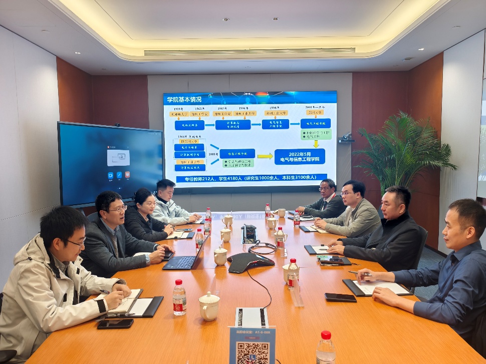 程肇对学院一行的到访表示欢迎,并介绍了公司在计算产业与智慧能源领域的战略布局与技术优势。他提到,超聚变的发展离不开电气、自动化、电子信息等专业人才的支持,期待与学院加强联动,共同构建产学研用一体化的人才生态。陈斌与王亚平分别就具体技术需求、人才招聘与培养模式等进行了交流。