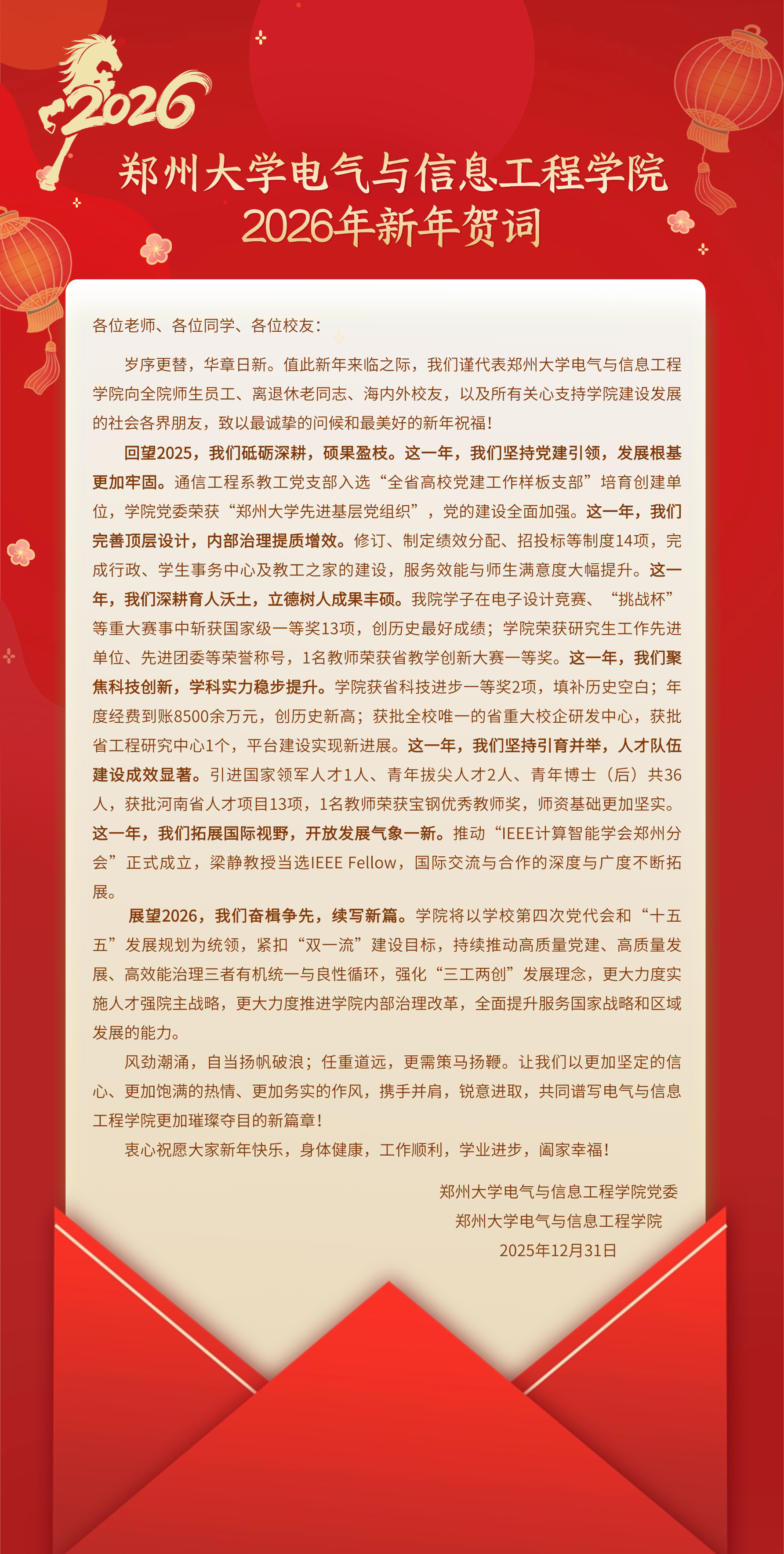郑州大学电气与信息工程学院2026年新年贺词