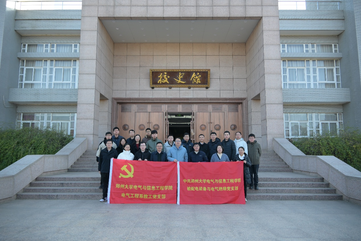 文化之传承与兴盛依于历史,教育之核心与长效系于思政。为深入学习校史校情,传承郑大精神,强化党建引领作用,2025年12月25日,我院党委副书记、纪委书记秦毅男带领电气工程系党支部、输配电装备与电气绝缘党支部联合开展校史馆参观学习活动,两支部党员同志20余人共同参与,在回溯校史征程中凝聚奋进力量。