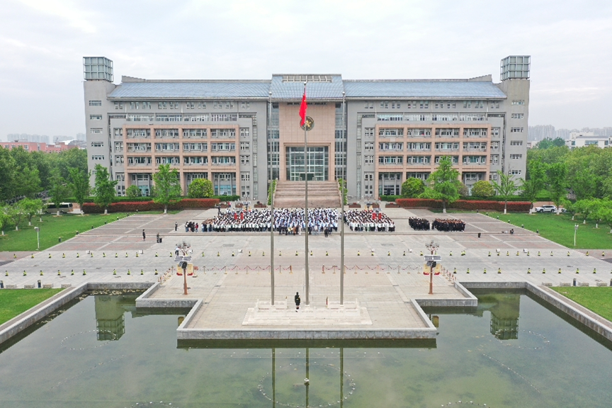 五星广场庄严肃穆,国旗护卫队步伐整齐、精神昂扬,护送五星红旗走向国旗台。伴随着《义勇军进行曲》,五星红旗迎着晨光冉冉升起,全体师生肃立行注目礼,齐声高唱国歌,现场气氛庄重而热烈。