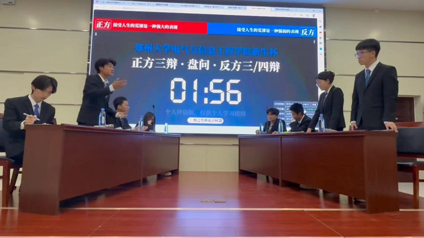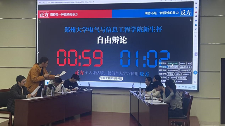 近日,电气与信息工程学院第四届“新生杯”辩论赛决赛在学院五楼报告厅圆满落幕。经过前期多轮激烈角逐,2025级自动化类3、4班、自动化类5、6班、自动化类7、8班以及电子信息类7、8班四支代表队凭借扎实的思辨素养与出色的表达能力脱颖而出,成功会师决赛。