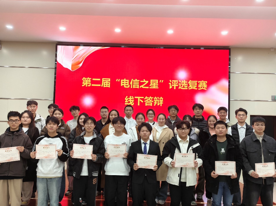 经过激烈角逐与严格评审,8位个人及集体脱颖而出获评本届“电信之星”。此次评选活动集中展现了我院学子追求卓越、全面发展的精神风貌,通过师生互动和经验传递,构筑了助力学生成长的坚实桥梁,更充分发挥了榜样的示范引领作用,激励全院学生在学习与生活中不断勇攀高峰,为学院的高质量发展持续注入强劲动能。(供稿人:王月)