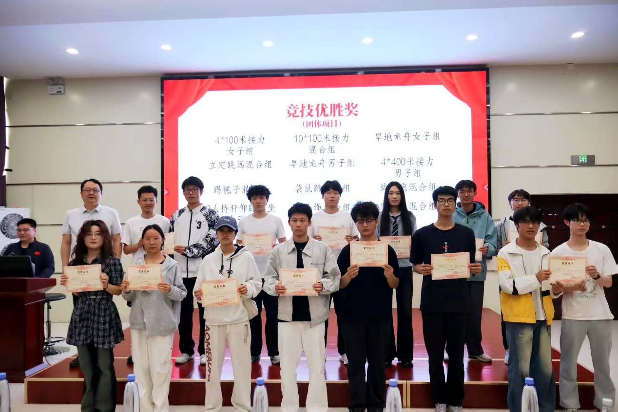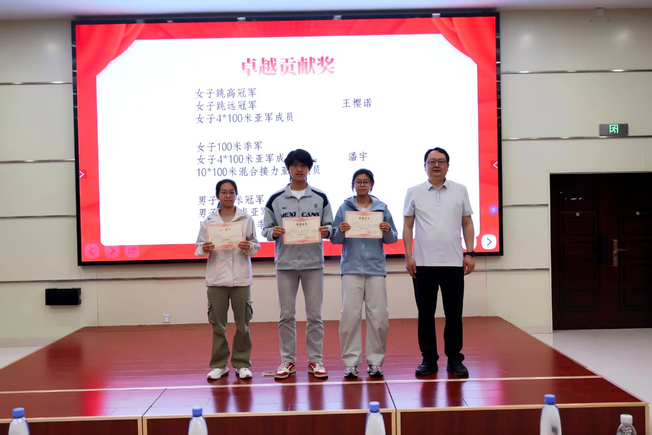 大会在赛事回顾视频中拉开序幕。本届校运会上,我院荣获男子团体总分第四名、女子团体总分第五名,并获评优秀仪仗队。为表彰先进,学院设立勤勉奋进奖、服务先锋奖、竞技优胜奖、卓越贡献奖,秦毅男为获奖同学颁奖。