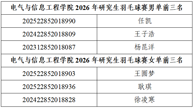 本次赛事为研究生提供了切磋球技、展示风采的平台,锤炼了拼搏意志,增强了集体凝聚力。学院将持续以体育赛事为载体,推动研究生全面发展,期待入选队员在校级羽毛球赛中再接再厉、为院争光。