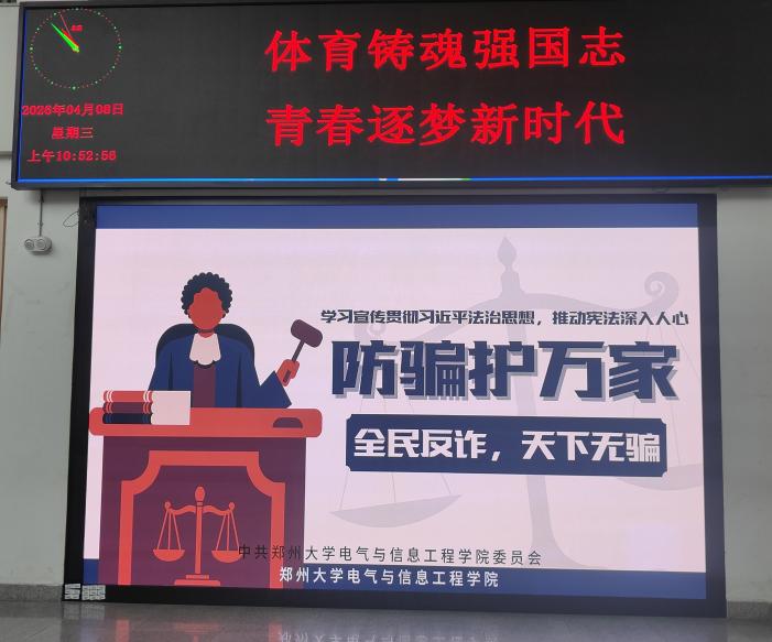 学院高度重视,精心统筹部署。接到学校通知后,学院第一时间召开工作部署会,明确活动要求、时间节点与责任分工,确保各项工作有序推进。为营造“人人识诈、全员防骗”的浓厚氛围,学院充分利用电子屏、宣传栏等线下宣传阵地,循环播放反诈标语、典型案例与防范提示,推动反诈知识入眼入脑入心。同时,学院向各班级统一下发反诈 PPT 等学习材料,为宣传教育活动提供有力支撑。