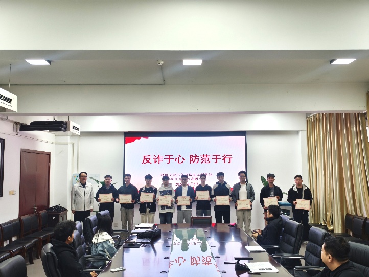 表彰先进典型,凝聚反诈合力。4月8日上午,学院召开防范电信诈骗宣传教育活动表彰会。学院党委副书记秦毅男为获奖集体和个人颁发荣誉证书,并向受表彰的集体与个人表示热烈祝贺。秦毅男在讲话中全面总结学院反诈宣传教育工作开展情况,充分肯定各班级与全体同学的积极参与和良好成效。他强调,防范电信诈骗是维护学生财产安全、保障校园和谐稳定的重要举措,希望受表彰的集体和个人珍惜荣誉、当好表率;希望全体同学持续增强防范意识,自觉抵制各类诈骗陷阱,共同守护平安校园。
