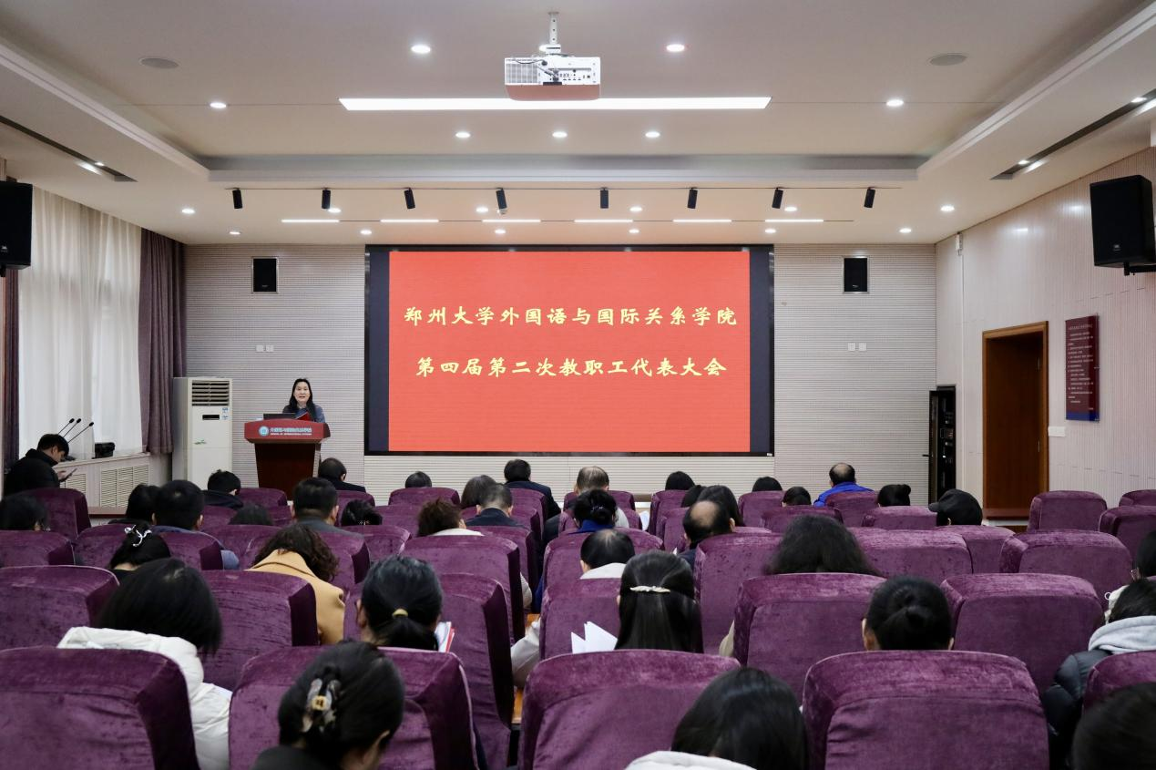 1月17日,外国语与国际关系学院第四届第二次教职工代表大会在学院第一学术报告厅隆重举行。这是在全院深入学习贯彻党的二十届四中全会精神,认真落实中国工会十八大及河南省工会十六大精神,聚力推进学校“双一流”建设,科学谋划“十五五”的关键时期召开的一次大会。学院党政领导班子全体成员及教职工代表齐聚一堂,共商学院发展大计。