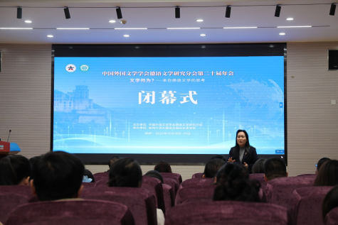 闭幕式由中国社会科学院外国文学研究所研究员徐畅主持。北京大学黄燎宇教授在致辞中肯定了本次会议的学术成果,勉励青年学者坚守文学研究的深度与独立精神,并对郑州大学外国语与国际关系学院在会议组织中的细致筹划表示感谢。中国外国文学学会德语文学研究分会会长李永平邀请郑州大学外国语与国际关系学院副院长高晓玲教授致辞,对会议的圆满举行表示祝贺。随着热烈掌声响起,大会圆满闭幕。