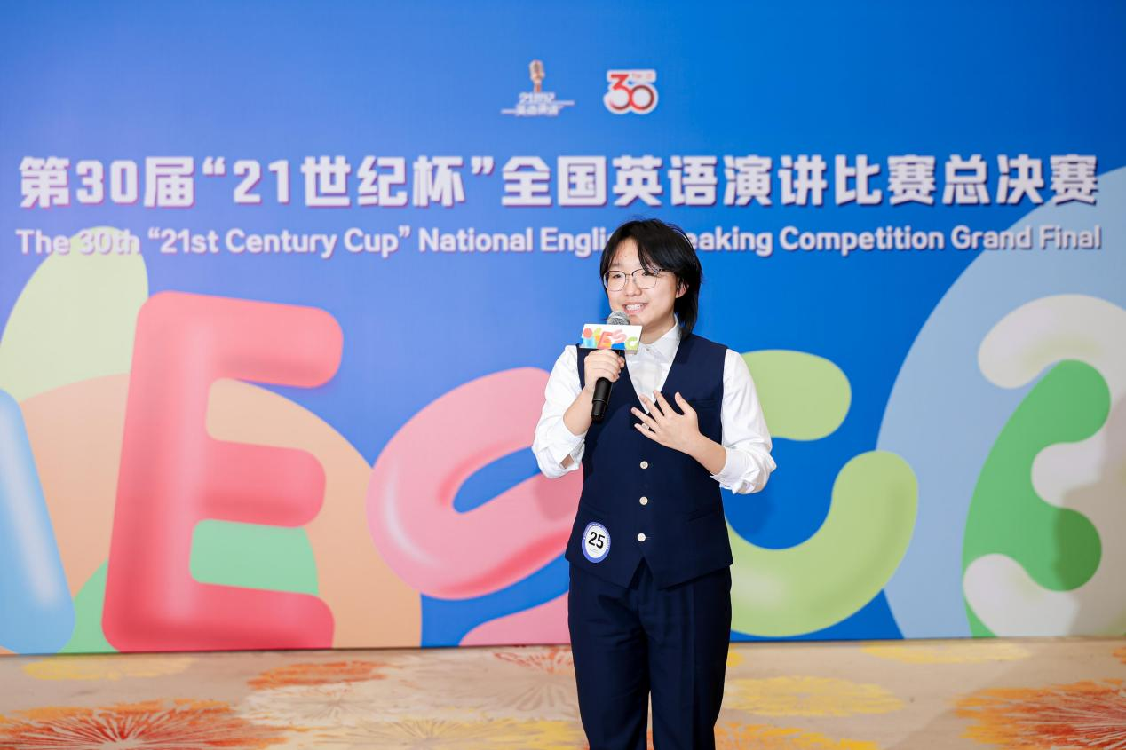 “21世纪杯”全国英语演讲比赛由《中国日报》主办,是英国伦敦国际公共英语演讲比赛的中国区选拔赛。该赛事旨在培养大学生的国际交流能力,提升他们讲好中国故事的水平,凝聚青春力量,成为大学生展示自我的重要平台。本届大赛经过全国校园赛、地区复赛、地区决赛多次选拔,来自北大、清华、上海交大、复旦、北外、上外等高校350余名优秀选手晋级全国总决赛。