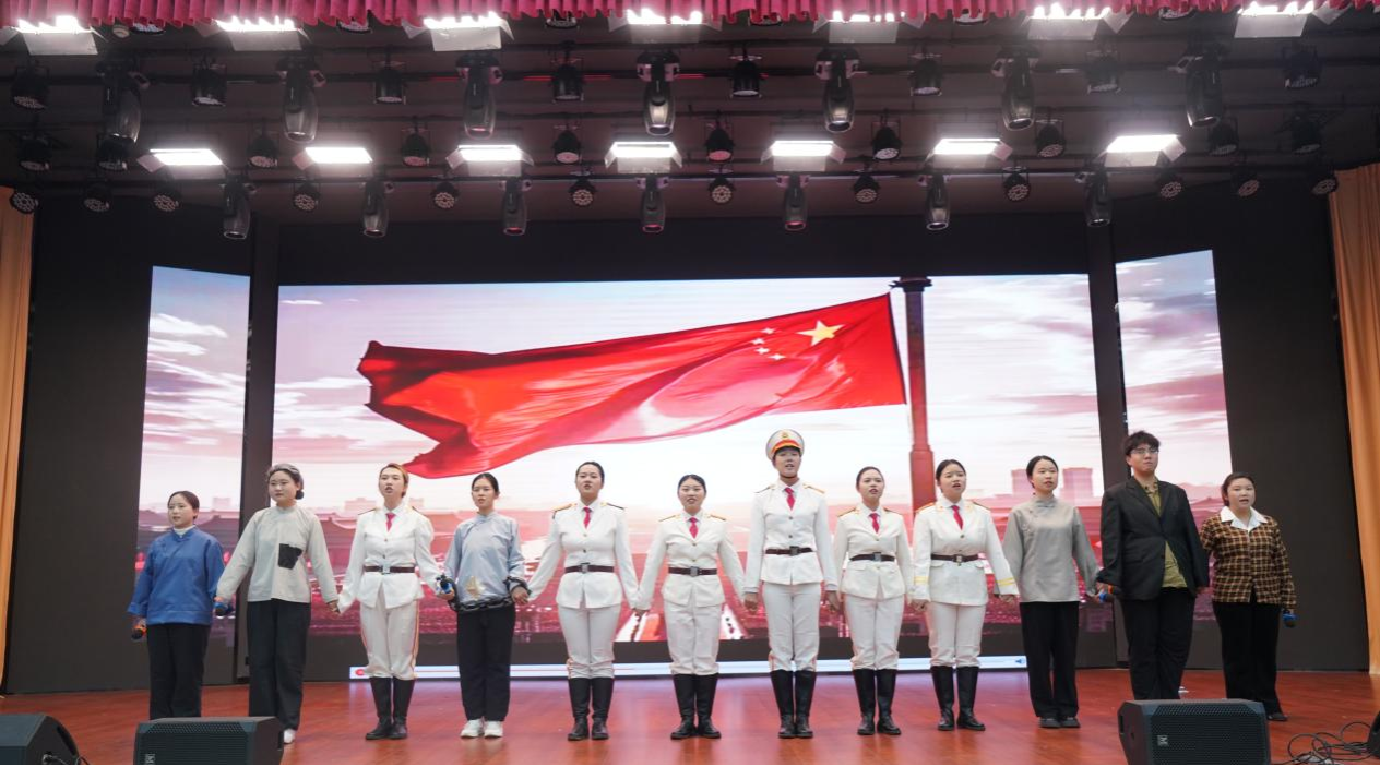 本届大赛旨在深入学习贯彻习近平总书记在纪念抗日战争暨世界反法西斯战争胜利80周年大会上的重要讲话精神,由党委学生工作部、党委研究生工作部、共青团郑州大学委员会、历史学院、考古与文化遗产学院联合主办。我院2025级英语一班积极响应,在班主任周雪松老师的动员与指导下,夏翊杉、赵予绮、邓宇、李妍、朱宇佳、沈小楠、徐传惠、赵思宇、王梦琪、李想、郭媛媛、杨恩琪、周墨等13名同学迅速组建参赛团队,并邀请专业导演进行排练指导。