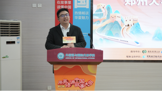 近日,由中国教育电视台、新航道国际教育集团联合主办的第六届“用英语讲中国故事大会”河南赛区启动仪式在郑州大学外国语与国际关系学院第一学术报告厅举办。郑州大学党委宣传部副部长刘亮,教务部副部长兼教学评估与质量保障处处长侯翠红,校团委副书记张贺祥,校友总会副主任丁忠华,外国语与国际关系学院党委书记刘洪建、院长高晓玲,用英语讲中国故事大会河南赛区总指挥、新航道河南学校校长孙万年,河南省翻译协会副秘书长张凤杰出席活动。新航道河南学校相关部门负责人和外国语与国际关系学院师生代表100余人参加活动,共同为河南赛区启航助力。启动仪式由“用英语讲中国故事大会”河南选区学术评审代表张倩主持。