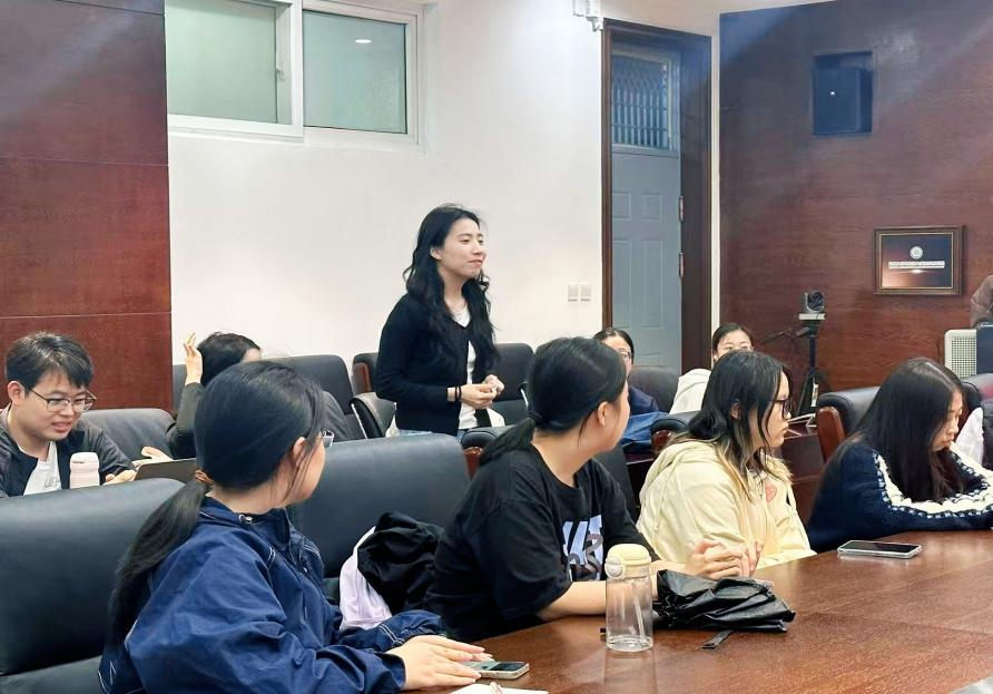 英语系主任李洁首先介绍了推免保研流程、科研竞赛加分规则等相关内容,她强调扎实的学业成绩是保研基础,学术潜力与综合素养是脱颖而出的关键。在分享环节,2022级王玮铭、蒋慧茹、张程棋、闫靖轩四名同学结合自身保研经验倾囊相授,从文书打磨、院校投递到英文面试应对,逐一进行细致讲解。王玮铭结合MTI 方向,分享了翻译实践积累、口笔译日常训练素材以及4月至9月每个阶段应做的事情。张程棋介绍了语言数据科学与应用方向的学习内容与备考心得。闫靖轩总结了夏令营申请、科研准备、心态调整、面试应答等实用技巧。蒋慧茹围绕涉外法治方向面试经历,分享如何将所学法律知识灵活运用,为有跨专业保研意向的同学拓宽了思路。互动答疑环节气氛热烈,同学们踊跃提问,师生耐心解答,现场干货满满。