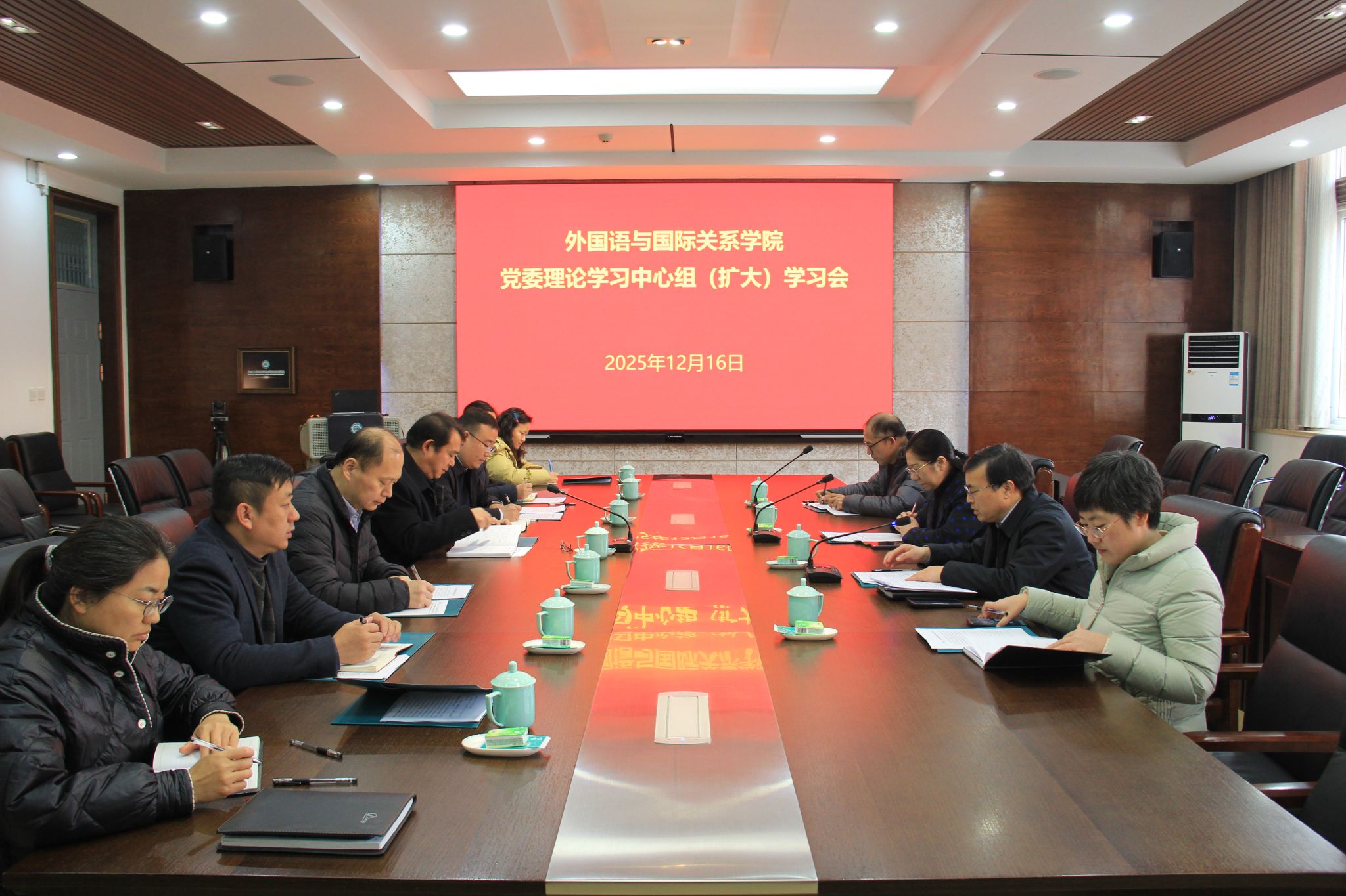 12月16日,外国语与国际关系学院党委理论学习中心组举行专题学习会,深入学习《习近平治国理政》第五卷中“朝着建成教育强国目标扎实迈进”一文,并结合《郑州大学国际传播工作座谈会议纪要》开展研讨。学术副校长、马克思主义学院院长刘吕红列席巡听指导。学院党委委员、教工与学生党支部书记参加学习。会议由学院党委书记刘洪建主持。