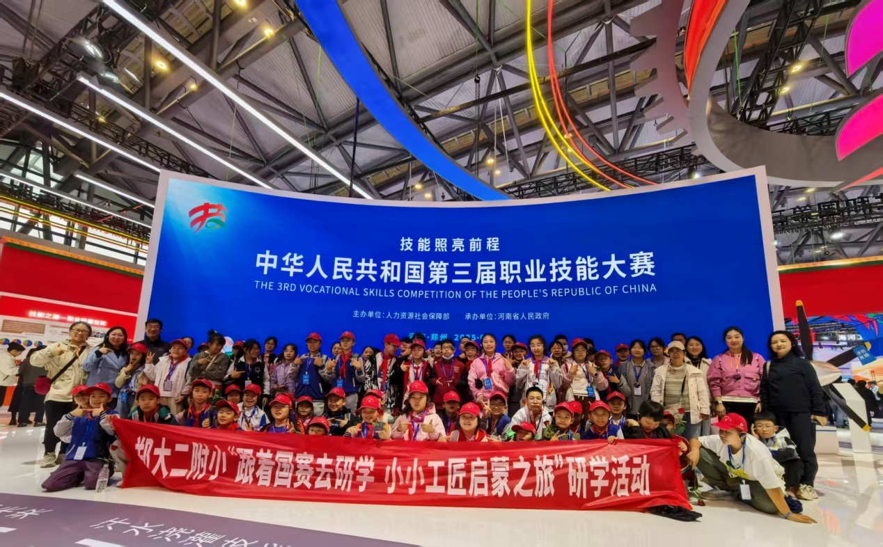 我校始终坚守对学生科学素养培养的特色之路,积极借助第三届全国技能大赛权威平台,精心打造了“跟着国赛去研学•小小工匠启蒙之旅”研学活动。活动通过现场观摩选手精湛技艺、亲自动手实践、与技能精英对话等方式,引领孩子们走进真实且充满魅力的技能世界。