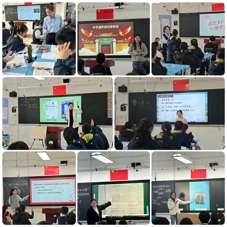 学生们在老师的引导下积极思考、踊跃发言、动手实践,师生默契互动,共同呈现出一节节气氛热烈、精彩纷呈的生动课堂,充分展现了青年教师的教学风采与扎实的专业素养。