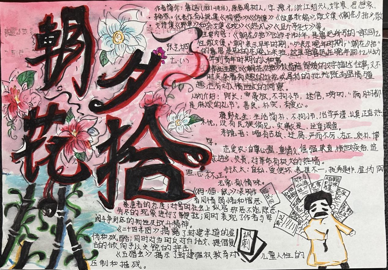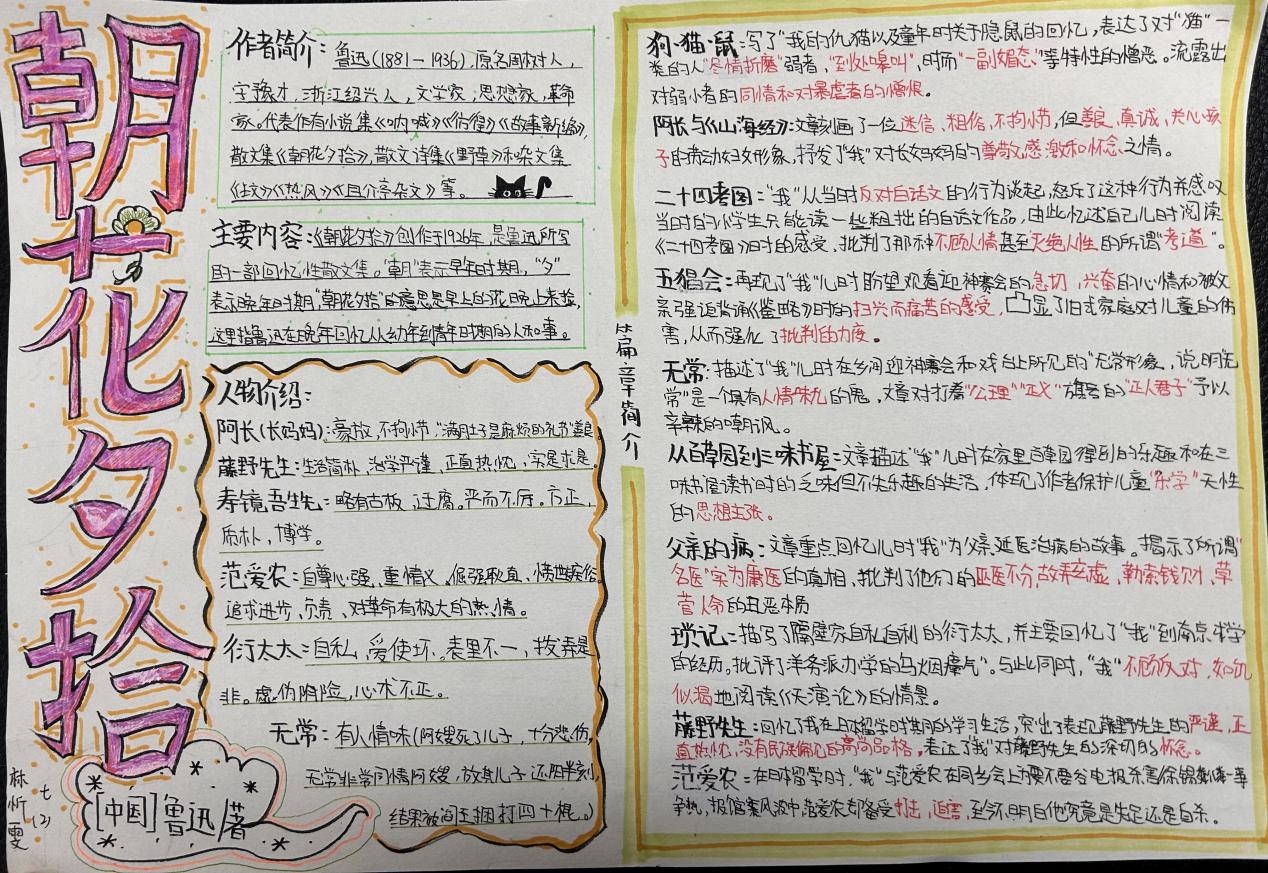 七二班的同学们刚读完必读名著《朝花夕拾》,就用手抄报把书中的人物、故事、情感“画”了出来——每一笔都是他们的阅读收获,每一页都是成长的印记。