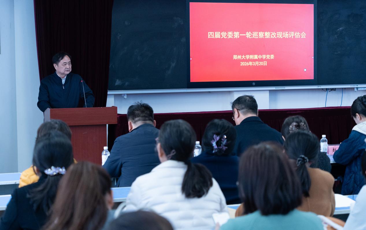 2026年3月20日,附属中学召开四届党委第一轮巡察整改现场评估会议。第一现场评估组组长李建华,成员靳利波、张瑞鹏、田青勇、赵地出席会议。附属中学领导班子全体成员和全体教职工参加会议。会议由附属中学校长杨升主持。