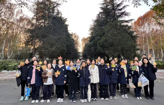 为深化五育并举育人理念,推动自然美育与实践劳动有机融合,11月20日下午,我校团委组织七年级音乐、美术社团部分学生走进郑州大学南校区,开展“拾叶造物”主题研学实践活动。让学生们在高校的初冬景致中采集自然素材,用双手赋予落叶新的生命力,让美育在实践中焕发别样光彩。