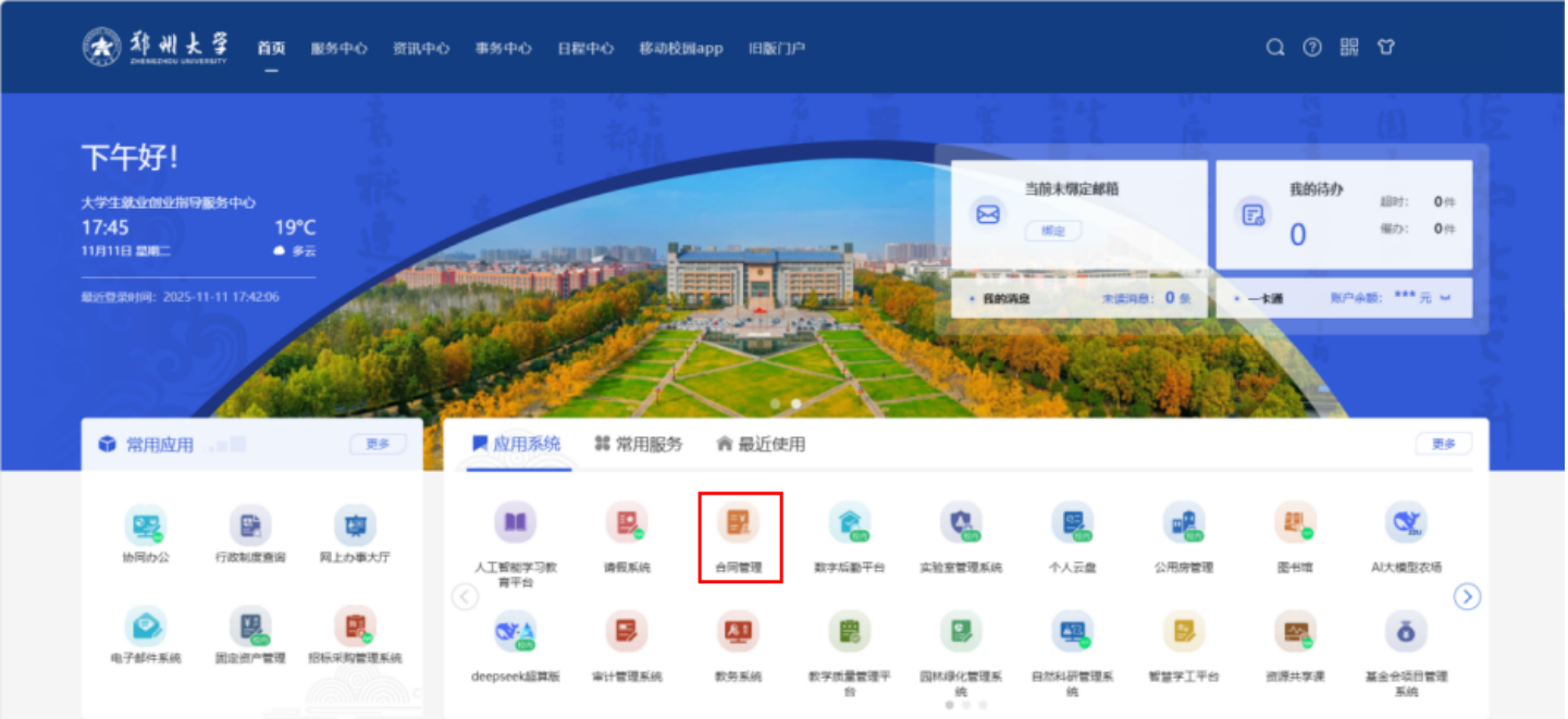2.首页点击“合同管理”进入合同管理综合服务平台。