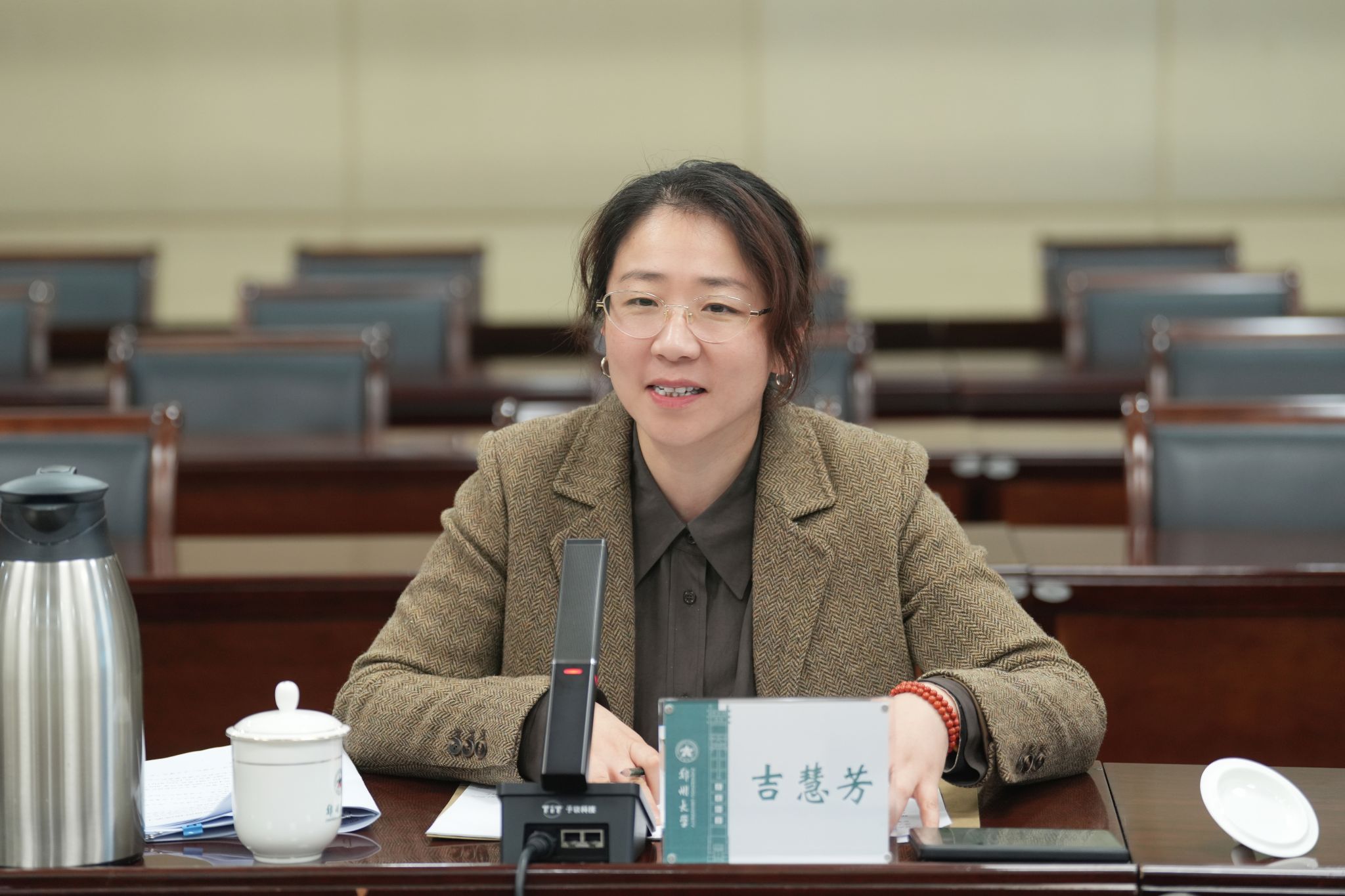 吉慧芳对袁刘坤一行到访表示欢迎,向郑州市长期以来给予郑州大学的支持和帮助表示感谢。她详细介绍了学校“双一流”建设进展,当前学校正深入贯彻落实党的二十届四中全会精神,锚定教育强国建设目标,围绕科技创新、产业发展、国家战略、区域需要优化学科专业布局,突出质量、特色和贡献,凝练“十五五”期间重大任务,加快构建教育科技人才一体化发展格局。她表示,郑州大学将服务区域经济社会发展作为“双一流”建设的重要内容,持续深化与地方政府、行业企业合作,将学校学科、科研、人才优势与国家战略、区域需要、行业需求紧密融合,推动在真实场景中培养拔尖创新人才,探索产教融合、科教融汇新范式。她强调,下一步要在前期良好合作基础上,不断拓展深化合作领域,推行“双清单制”工作机制,政企校共同梳理企业需求清单和学校科技成果供给清单,探索“订单式”卓越工程师培养模式,推动学科建设、科学研究深度融入产业场景,为郑州市经济社会高质量发展和产业升级贡献郑大力量。