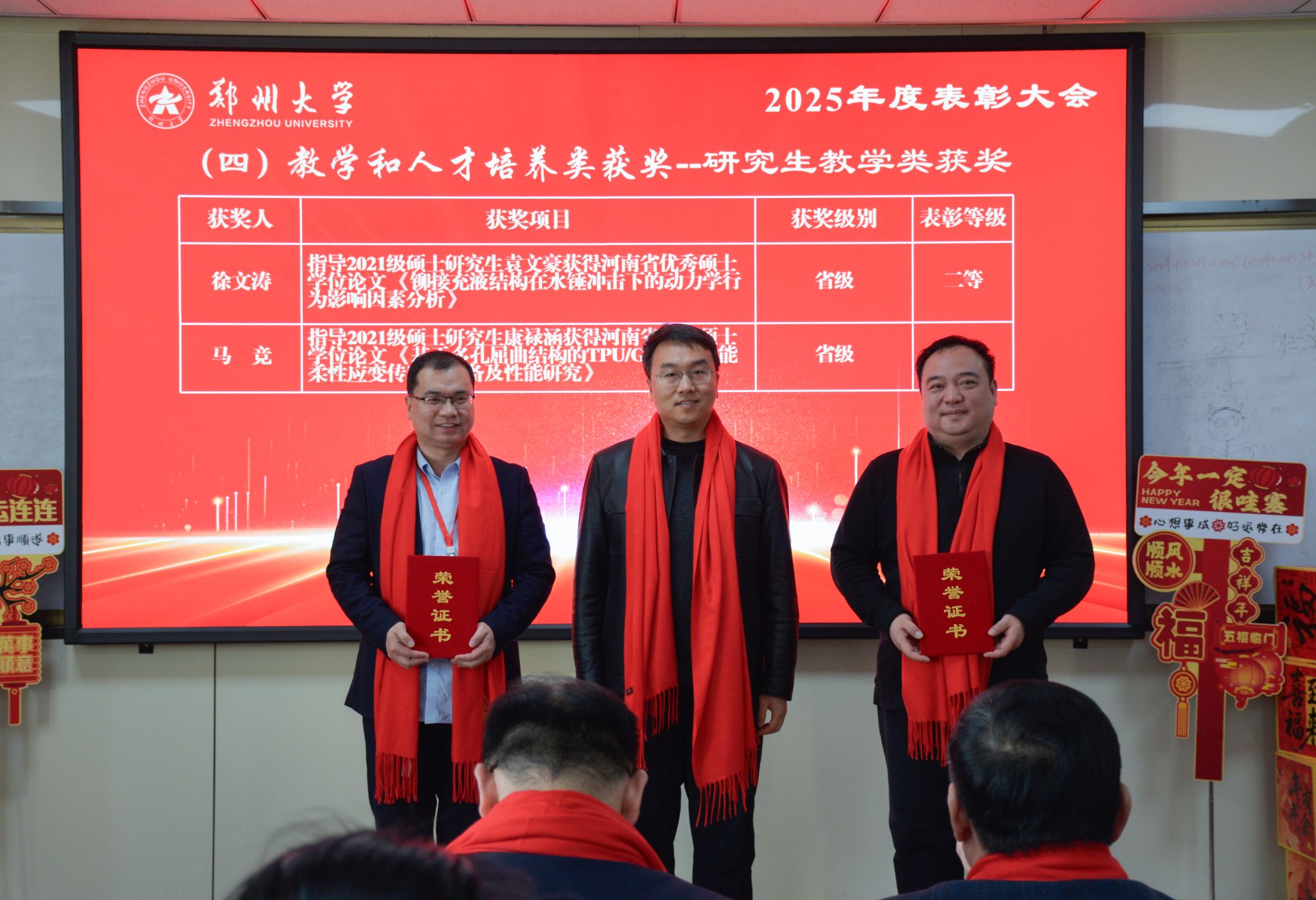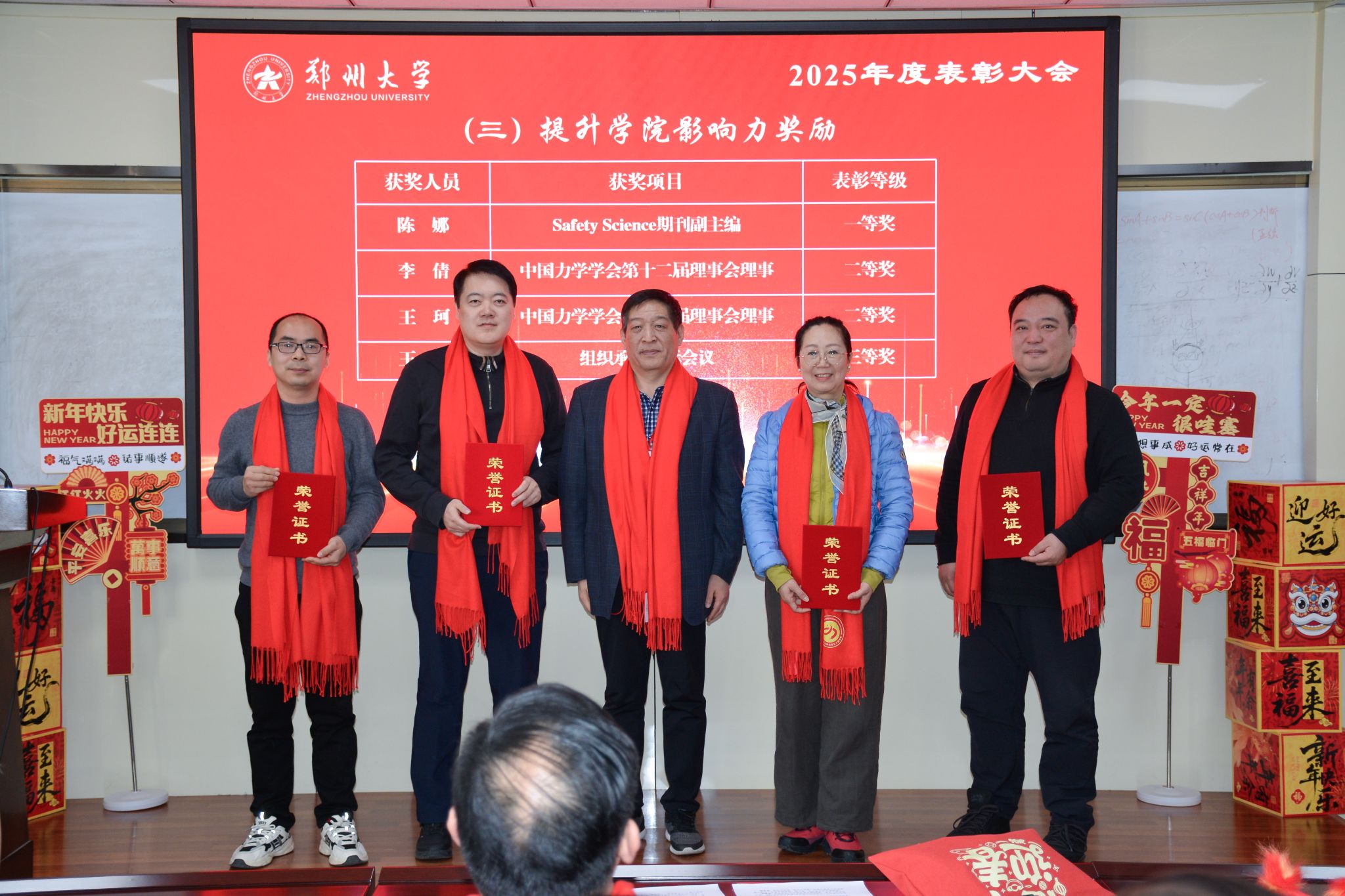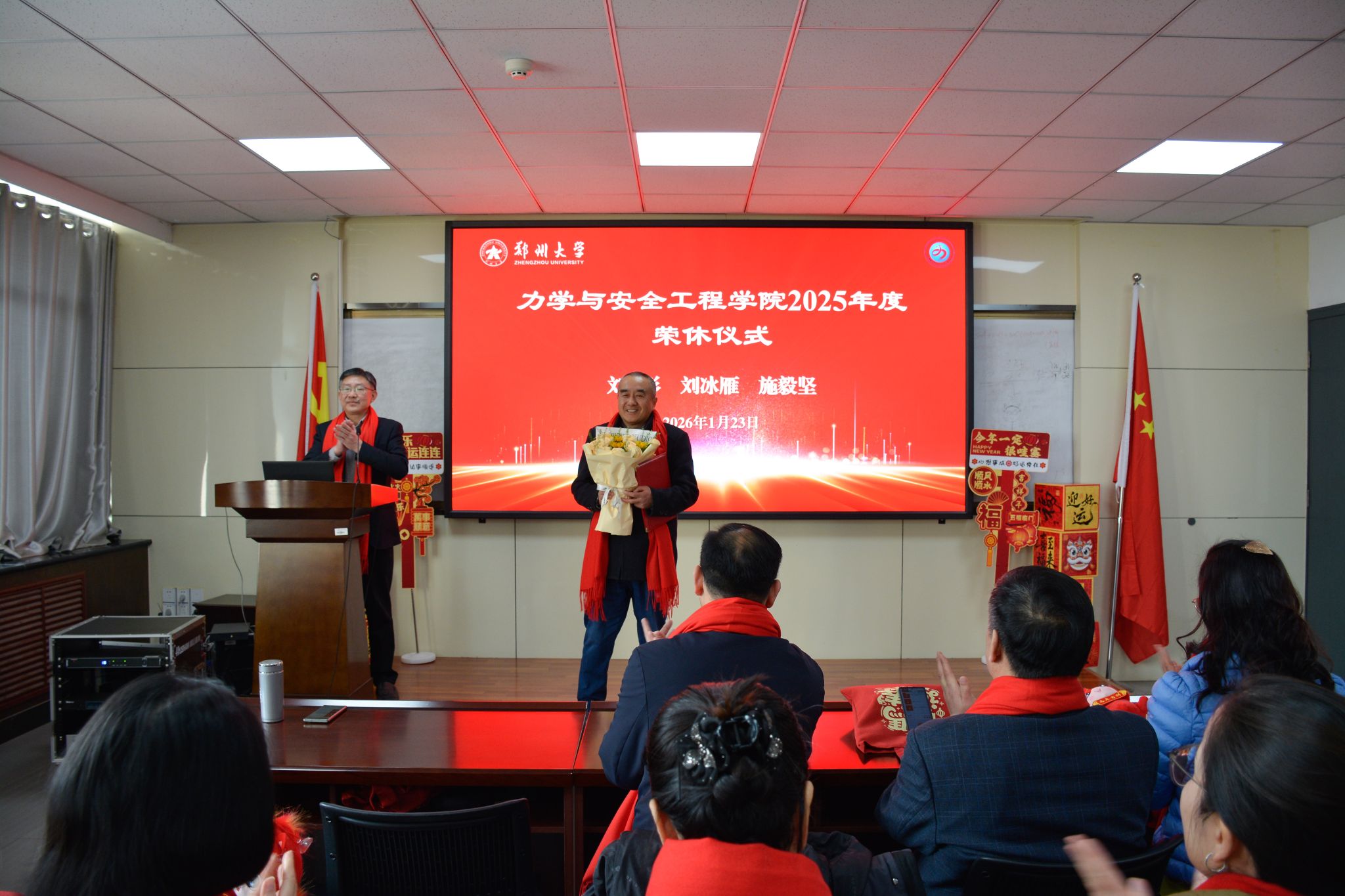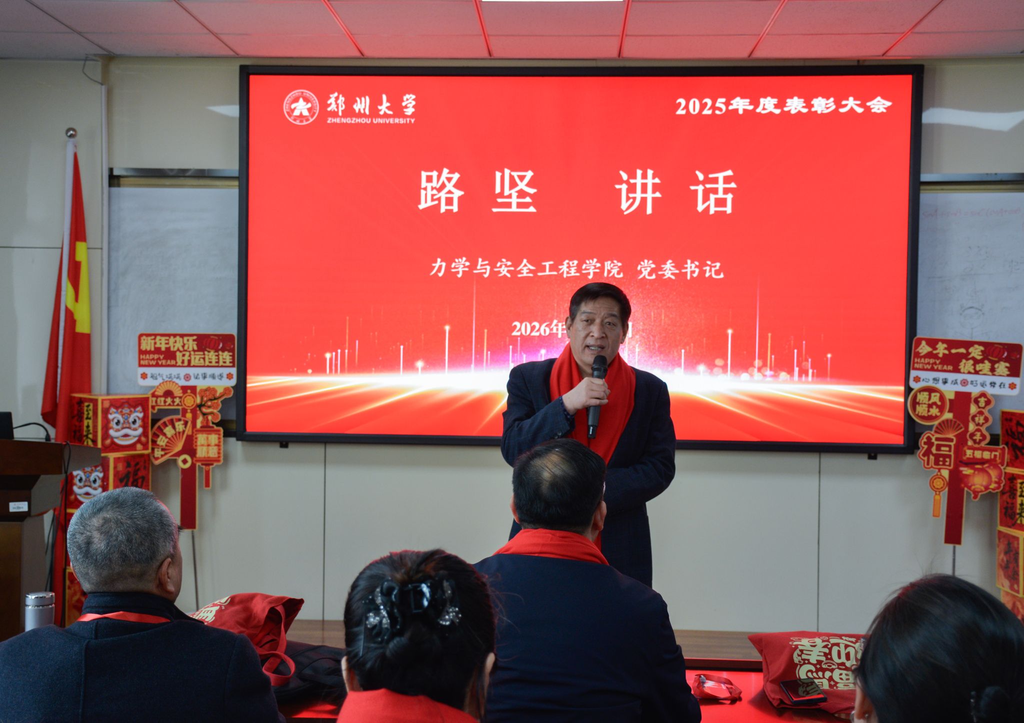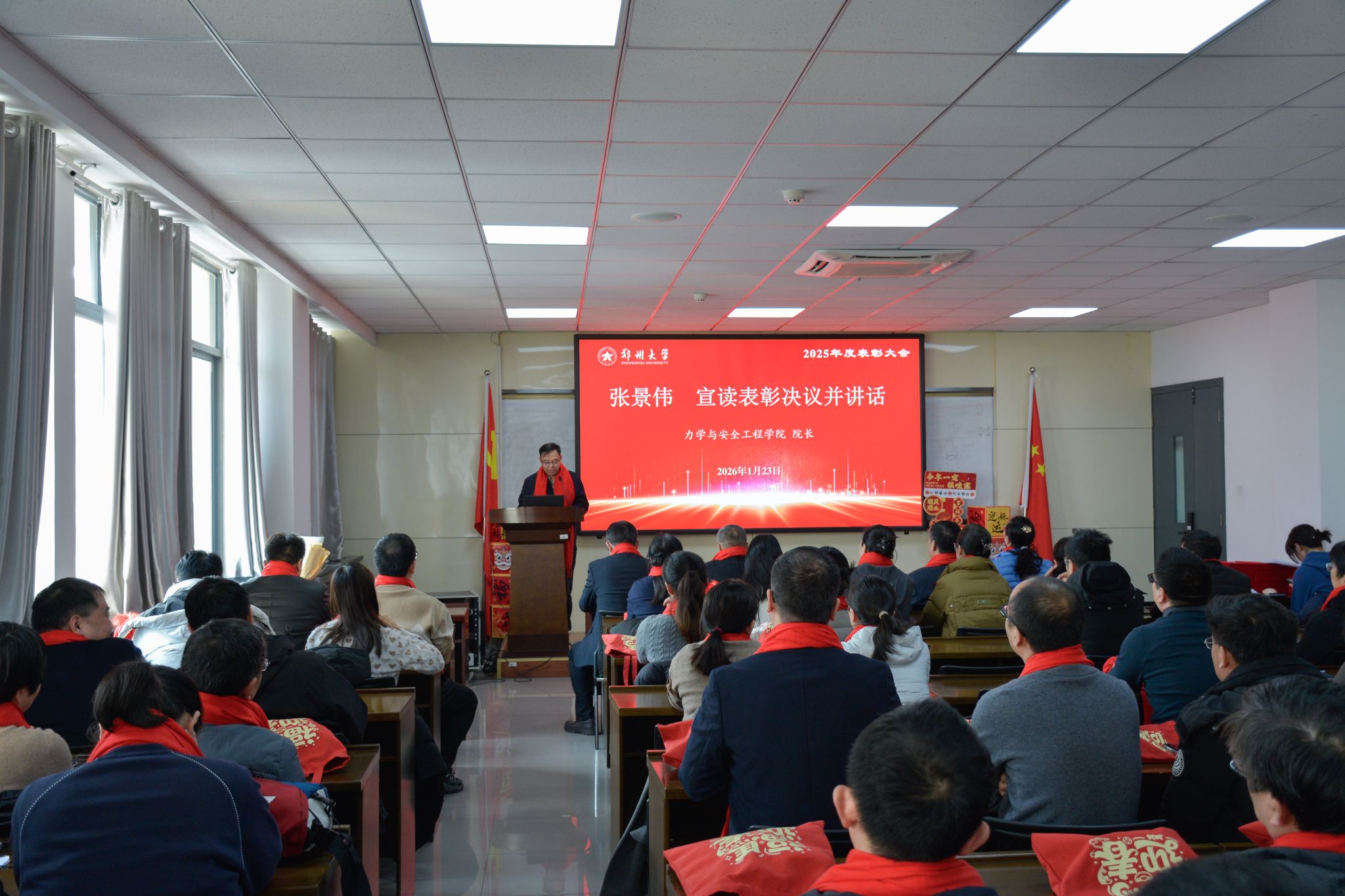 1 月 23 日,郑州大学力学与安全工程学院 2025 年度表彰大会顺利召开,全院教职工欢聚一堂,学院领导班子成员出席大会,并为获奖集体与个人现场颁奖,一同见证耕耘硕果,凝聚奋进力量。大会由学院党委副书记、纪委书记柯献辉主持。