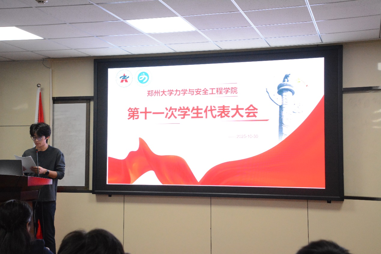 10月30日,力学与安全工程学院第十一次学生代表大会在院办四楼报告厅召开,100余名研究生与本科生代表参会,学院党委副书记桂玲玲、团委书记蒋培培列席大会,大会由院学生会执行主席刘豫晋主持。