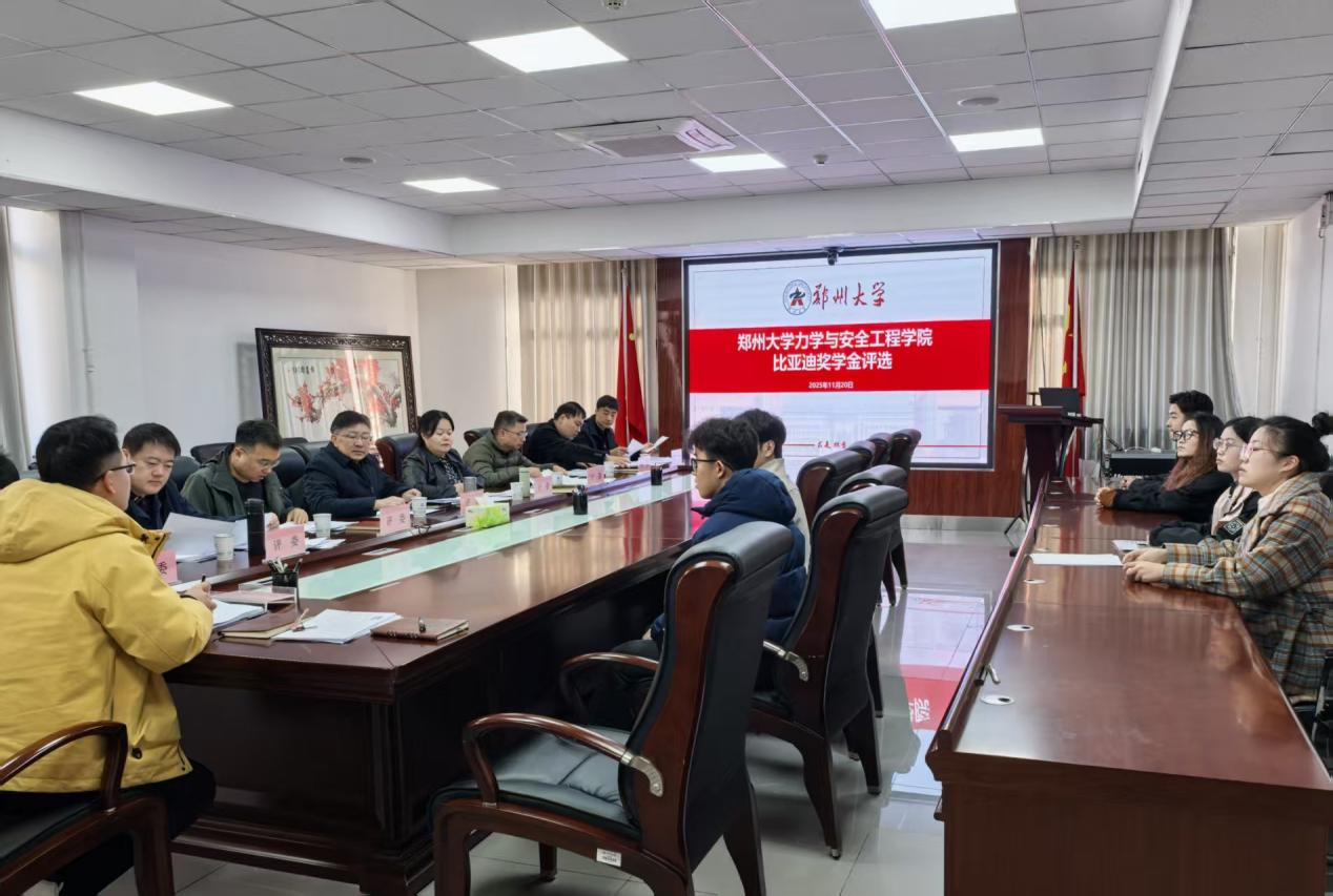 为贯彻落实人才强国战略,11月20日上午九点,力学与安全工程学院在学院会议室组织召开郑州大学比亚迪奖学(教)金评审会。评审工作严格依据学校及相关奖学金评选通知精神开展,旨在进一步规范奖学金评审程序,评审工作严格遵循“公开、公平、公正、择优”原则,号召全体学子以获奖同学为榜样勤学善思、锐意进取。