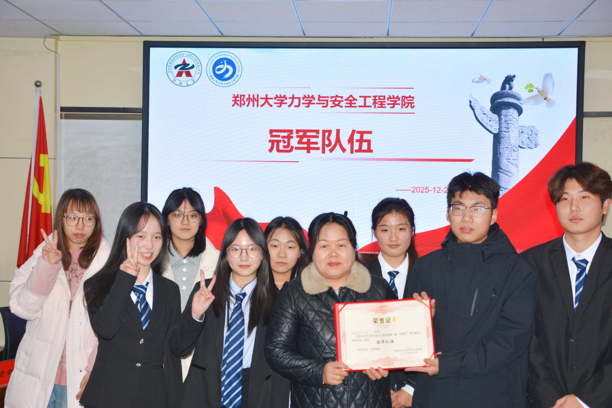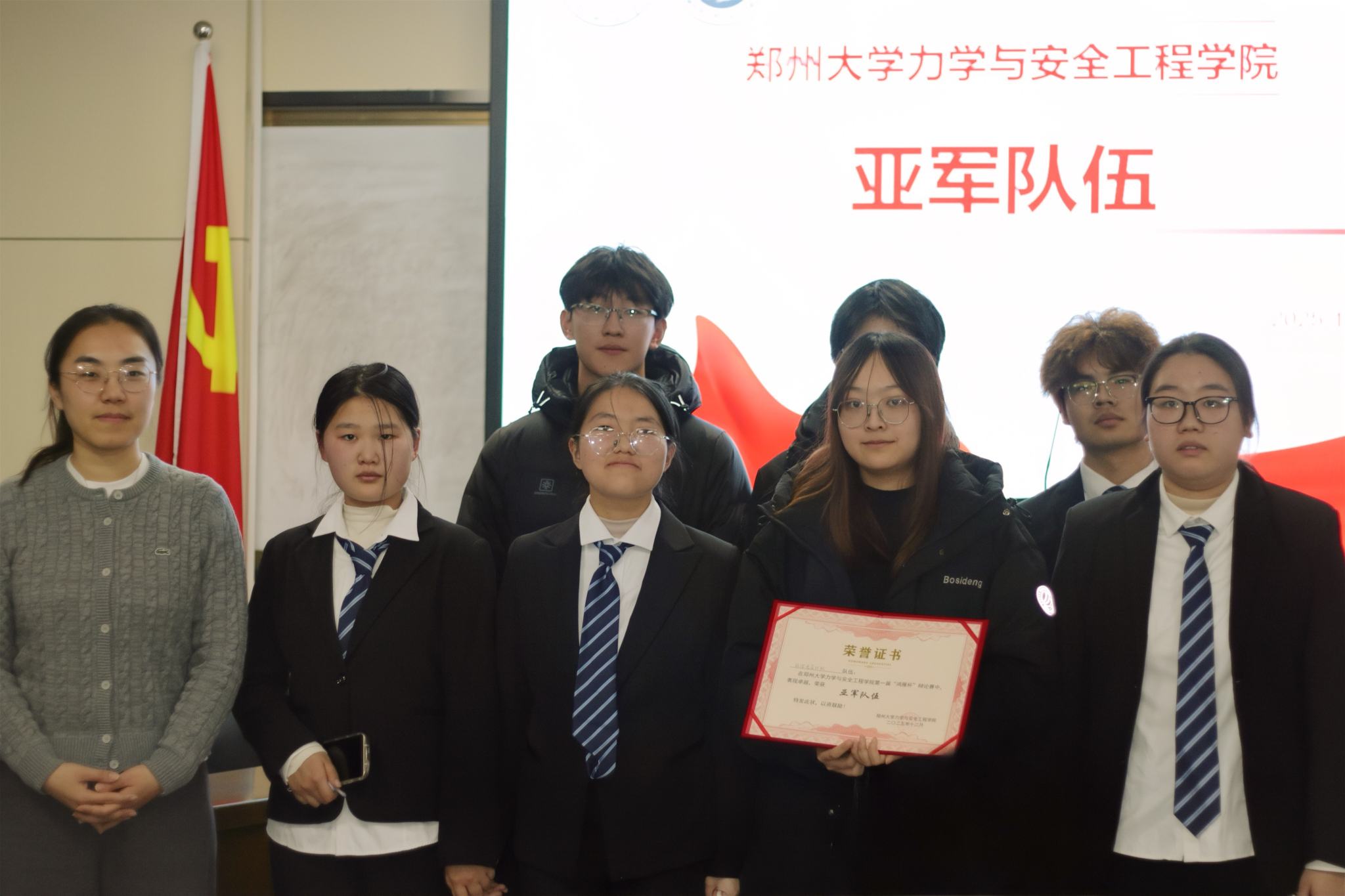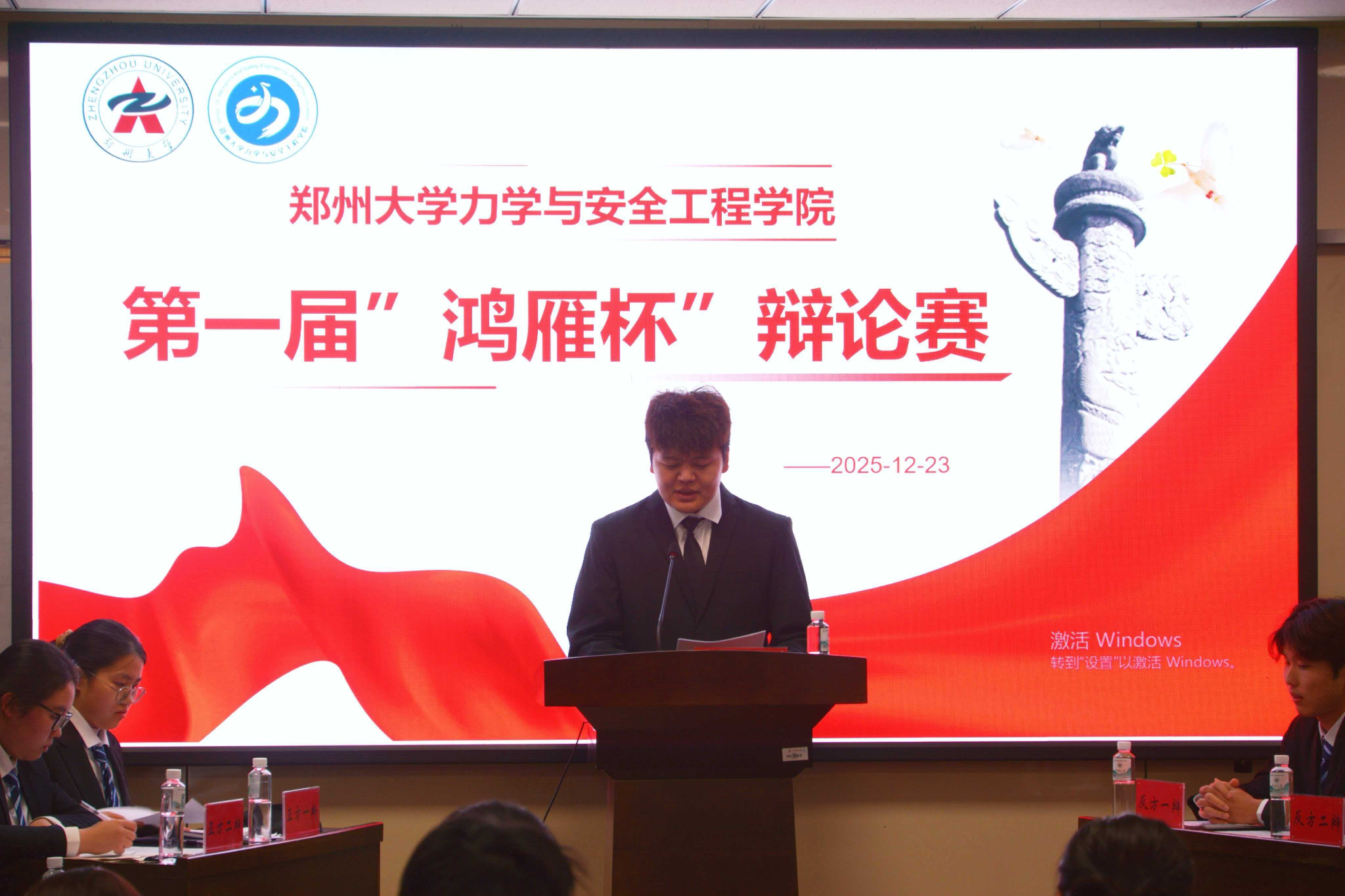 12月23日晚7点,2025-2026“鸿雁杯”辩论赛决赛在郑州大学力学与安全工程学院院办404圆满落幕。此次“鸿雁杯”共9支队伍参赛,经过激烈的九进五、五进三、三进二共三场角逐后,“让你无言以队”和“队名交给下一队”两支优秀的队伍成功晋级决赛,并围绕“英雄造时势还是时势造英雄”这一经典辩题展开最后的收官之战。