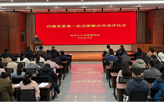 四届党委第一轮巡察整改第一现场评估组到政治与公共管理学院开展巡察整改现场评估