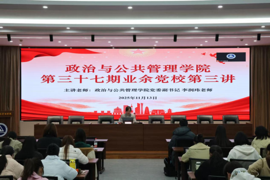 为引导新时代青年学生党员明确成长方向、强化责任担当、筑牢党性根基,11月13日晚,我院于院办一楼报告厅举办第三十七期业余党校党课第三讲。本次党课由我院党委副书记李润玮主讲,全体党校学员共同参加。